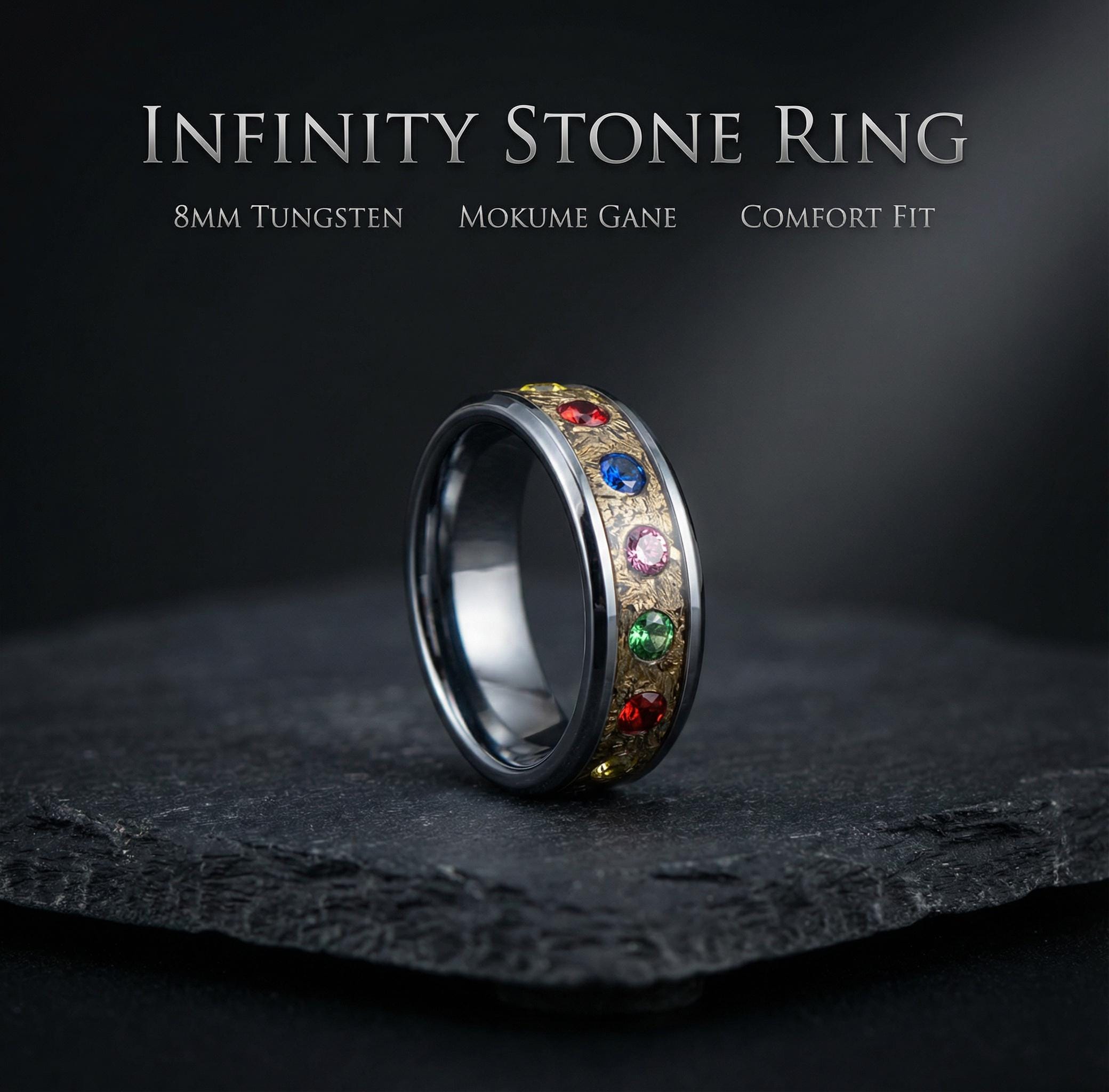 The Six Stones Mens Ring, Comic Book Inspired Cubic Zirconia Ring, Tungsten Engagement Ring, Superhero Jewelry, Anime Fan Art Gift