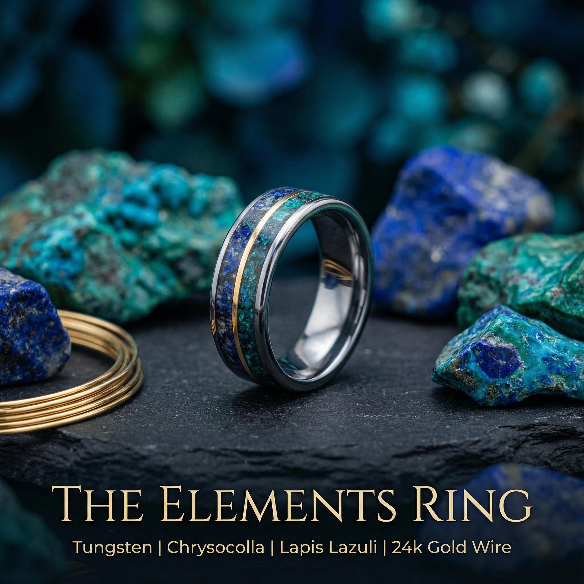 Lapis Lazuli Ring W/ Gold Inlay And Meteorite Dust | Mens Engagement Ring, Meteorite Ring, Gold Engagement Ring, Tungsten Band, Blue Ring