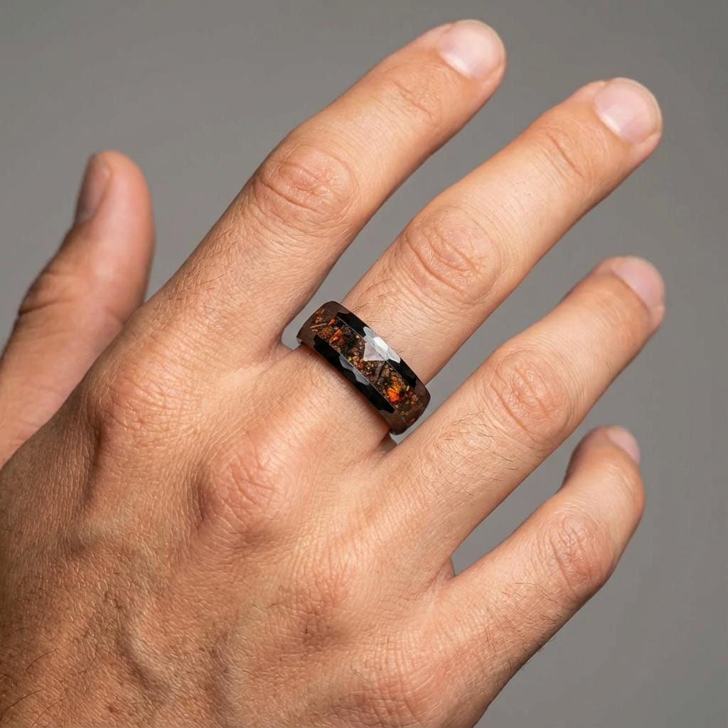 Our rings can be worn by men and women. The size and width can be adjusted as you wish, for the male a thicker ring and for the ladies a thinner ring. We can make the width 4mm-12mm depending on the design.