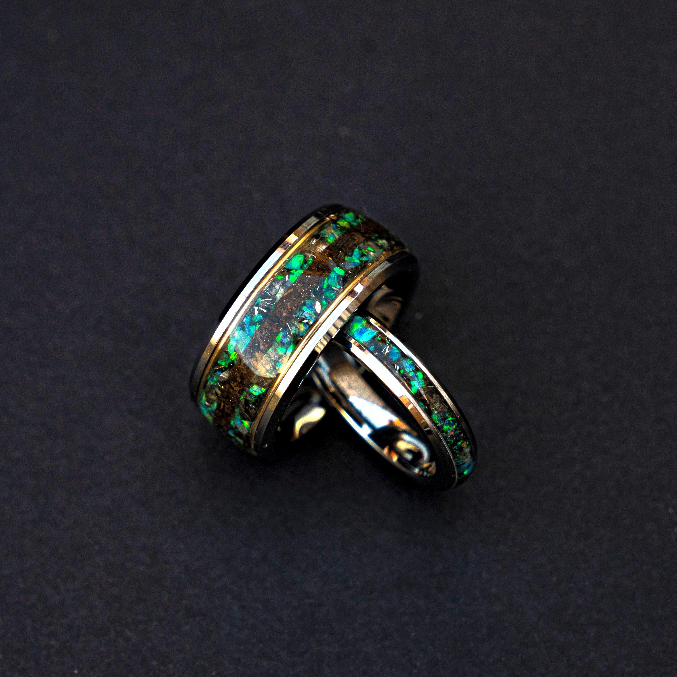 A matching ring set made with truly rare materials.