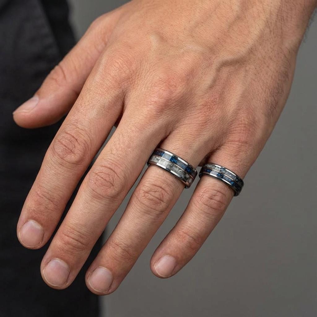 Our rings can be worn by men and women. The size and width can be adjusted as you wish, for the male a thicker ring and for the ladies a thinner ring. We can make the width 4mm-12mm depending on the design.