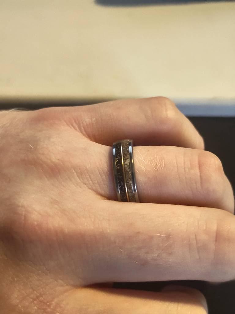 I am very content with this ring. I think the concept is super cool and it looks very pretty too. I asked the seller if the edges could be bevelled and that was no issue, so I think that's very sweet and kind. I've got multiple rings made of tungsten, compared to the others, the Tungsten on this one looks a little dull. This is the only part I dislike about the ring.i wish it would have been a bit more shiney/polished. Other than that, I love it!