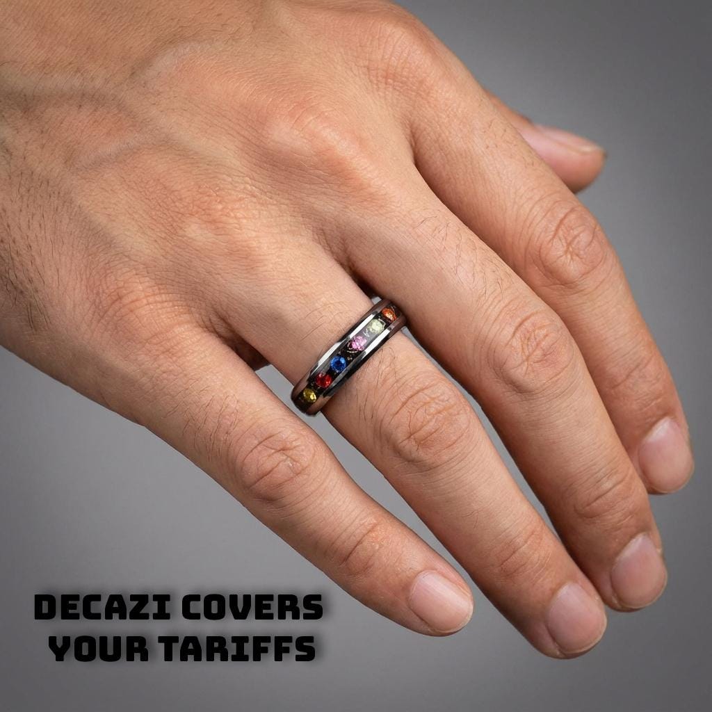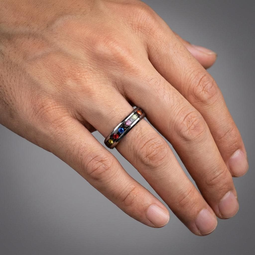 4mm Meteorite ring, The Six Infinity Stones Mens Ring, Comic Book Inspired Cubic Zirconia Ring, Tungsten Engagement Ring, Anime Fan Art Gift