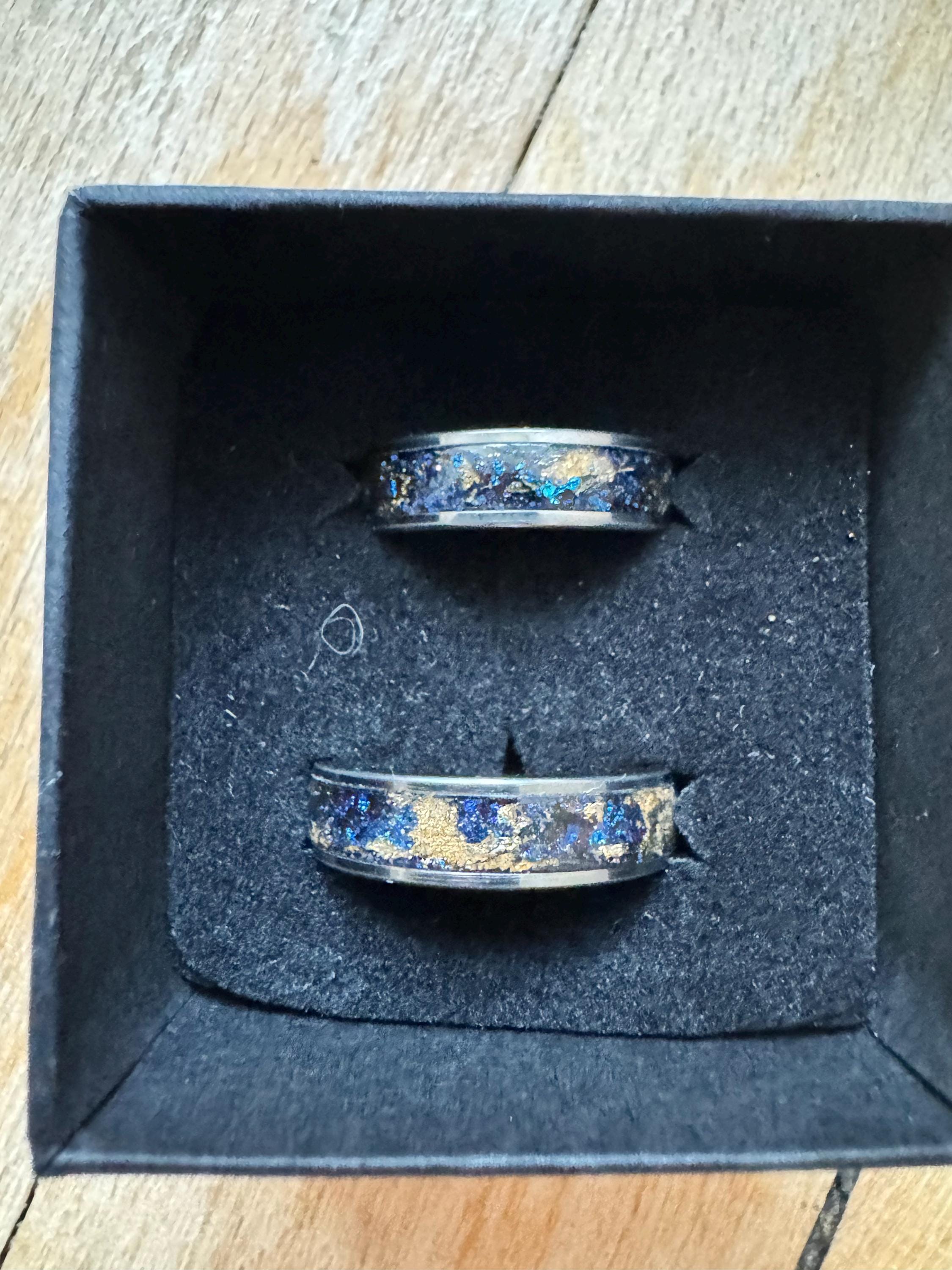Mixing ratios of vary in our bands (if applicable), this can results in materials can be more or less visible as pictured. By purchasing this listing you agree that this is possible, if you want to be sure a certain part is visible please send us a message upfront to discuss. After shipment the ring design is final, altering it upon receiving can only be done for a small fee to cover our costs for express shipping.
