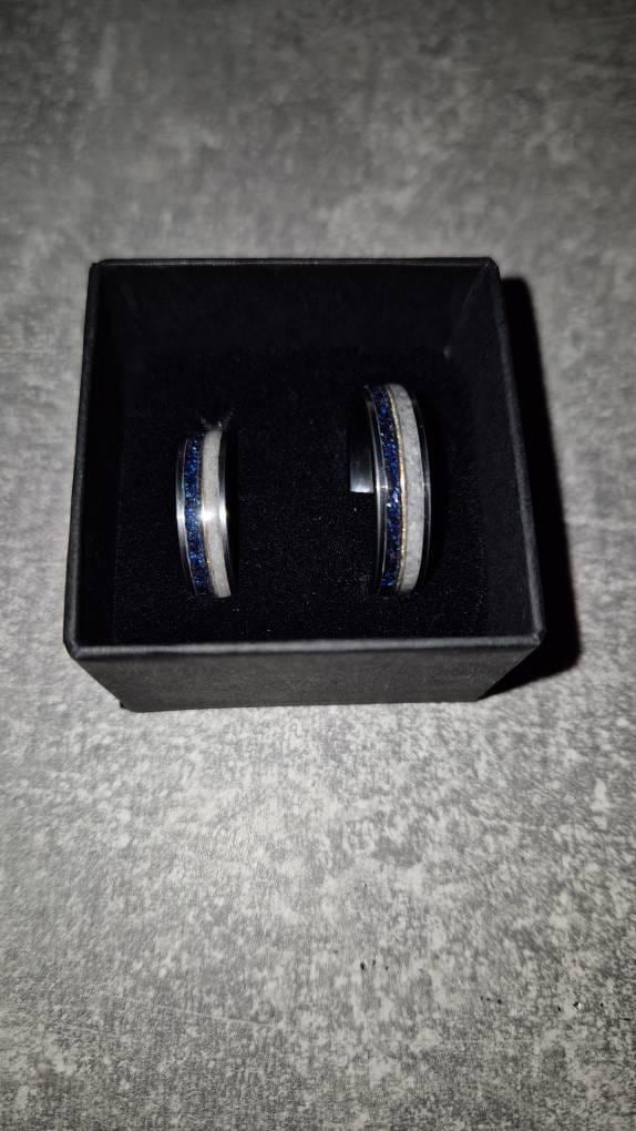 Mixing ratios van vary in our bands (if applicable), this can results in materials can be more or less visible as pictured. By purchasing this listing you agree that this is possible, if you want to be sure a certain part is visible please send us a message upfront to discuss. After shipment the ring design is final, altering it upon receiving can only be done for a small fee to cover our costs for express shipping.