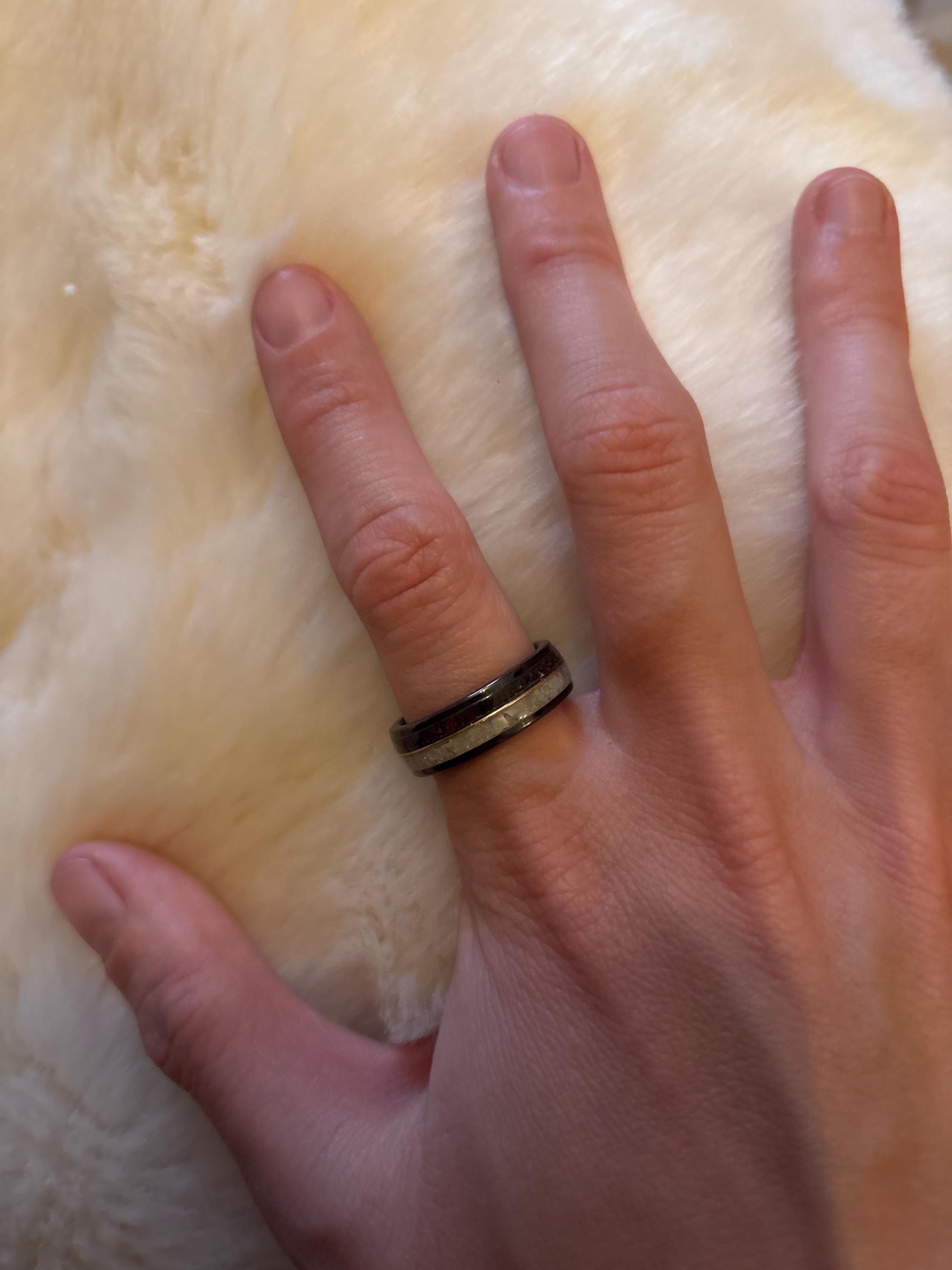 Item is exactly what it says on the tin, it's beautiful and unique. It feels very comfortable to wear Seller was also very informative and helpful when I had questions and replied fast. He said yes and loves the rings just as much as I do!