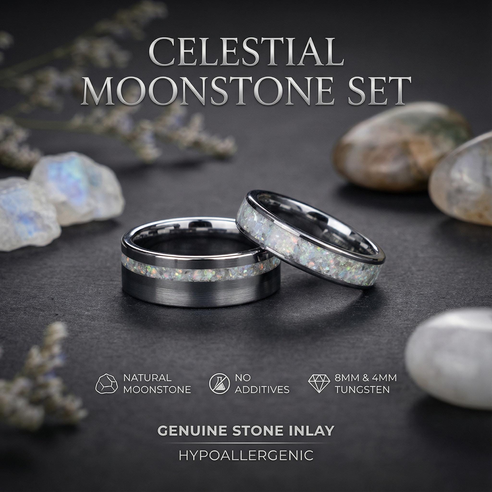 These tungsten rings combine strength and elegance. Whether you are saying “I do” or celebrating an anniversary, this opal inlay tungsten ring set is a symbol of love that lasts forever.