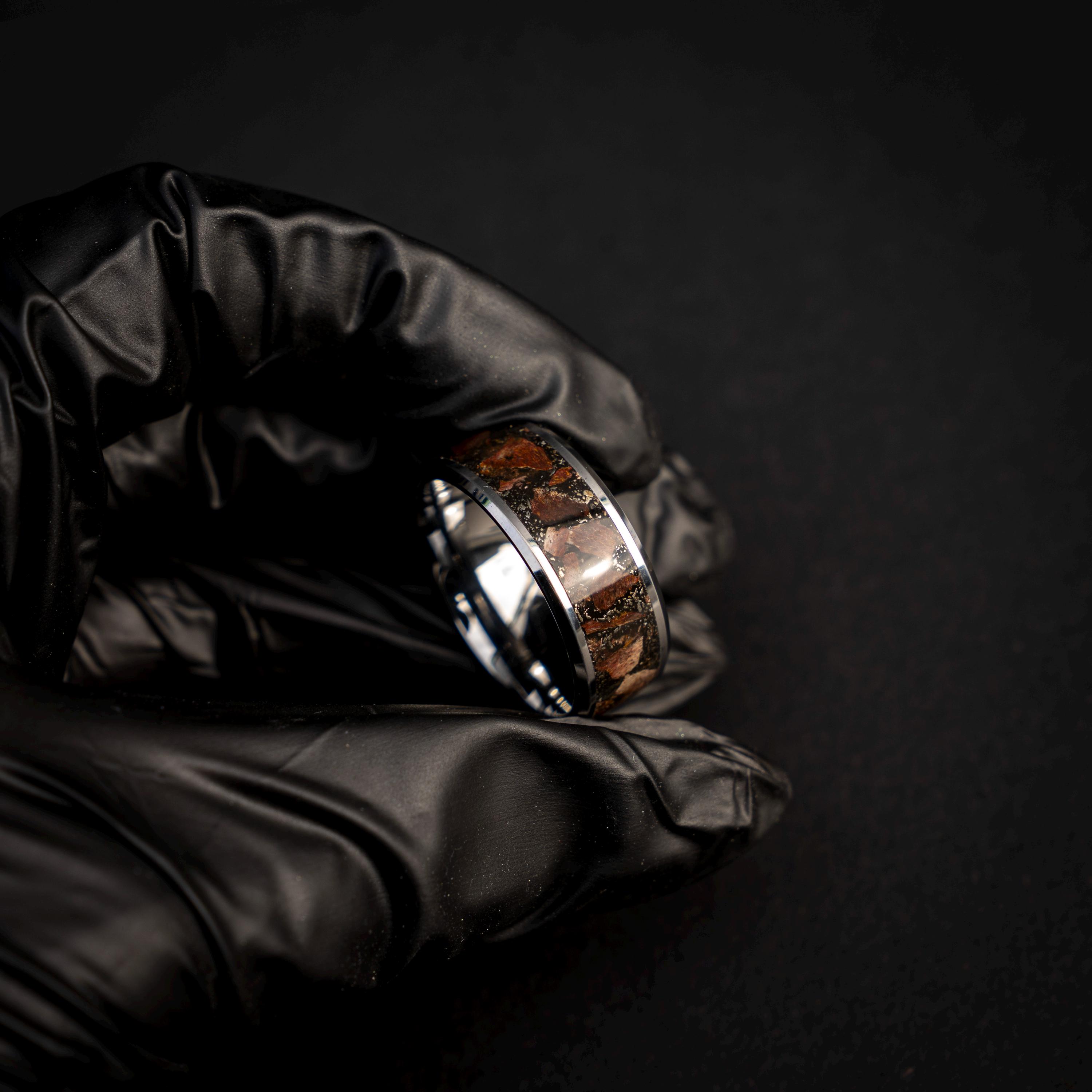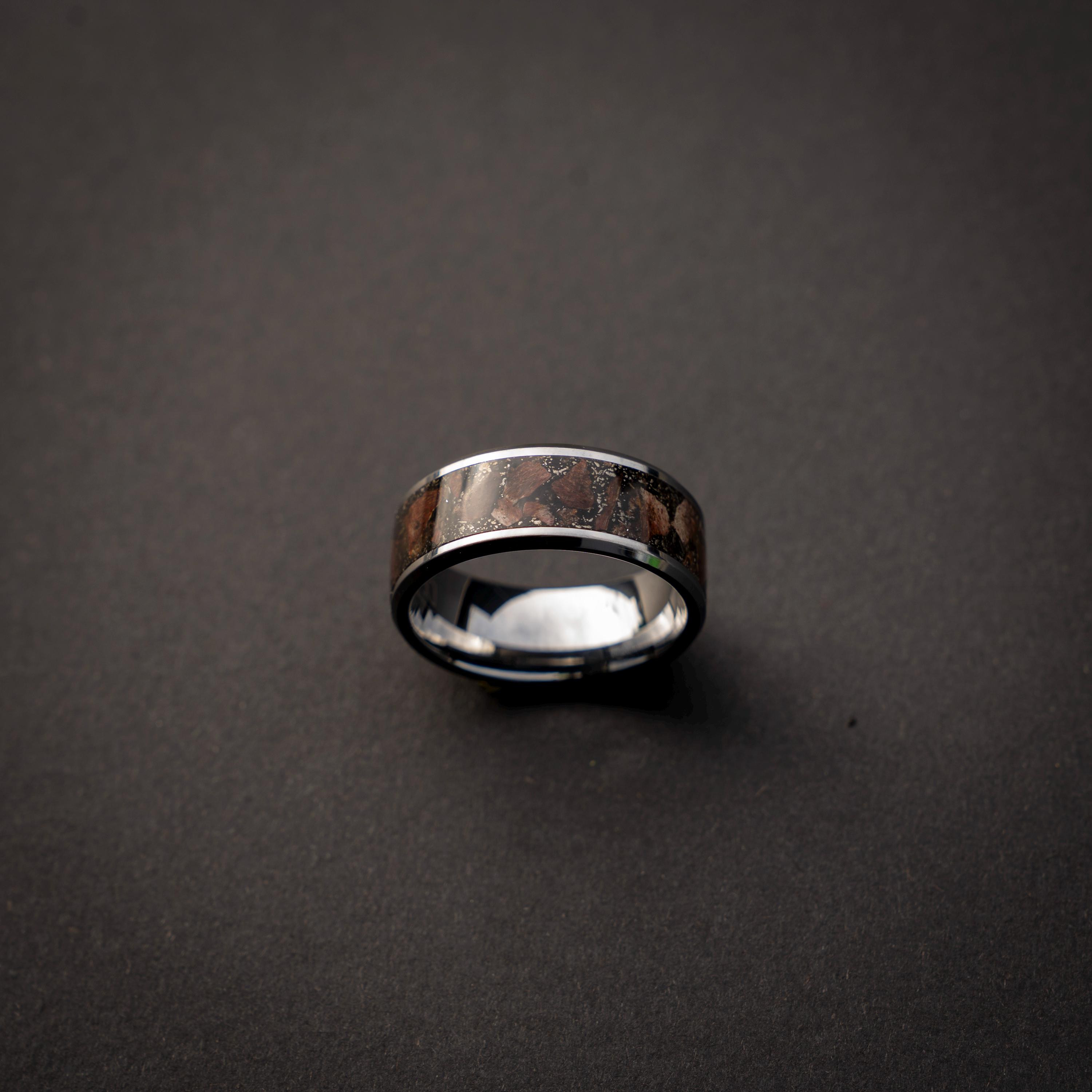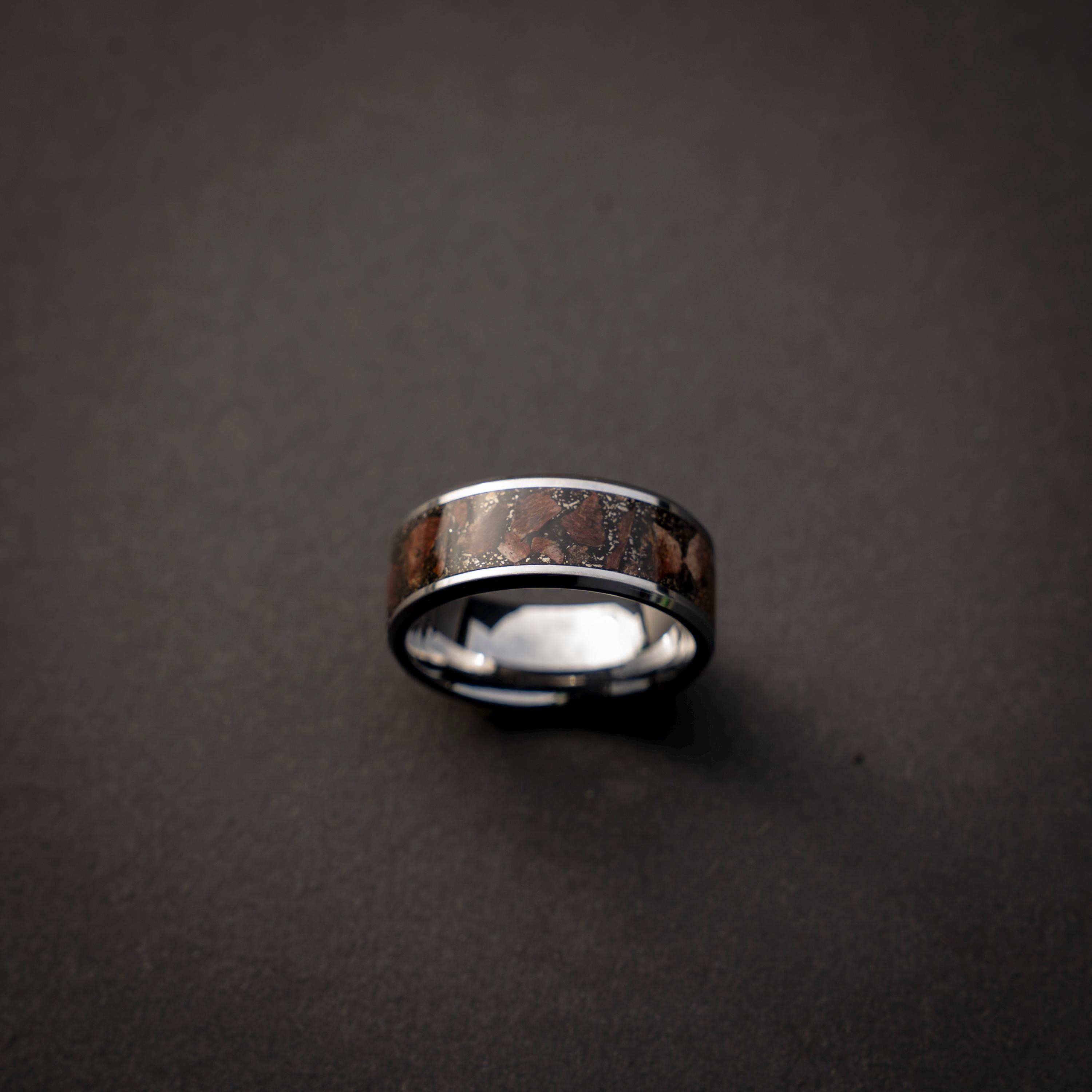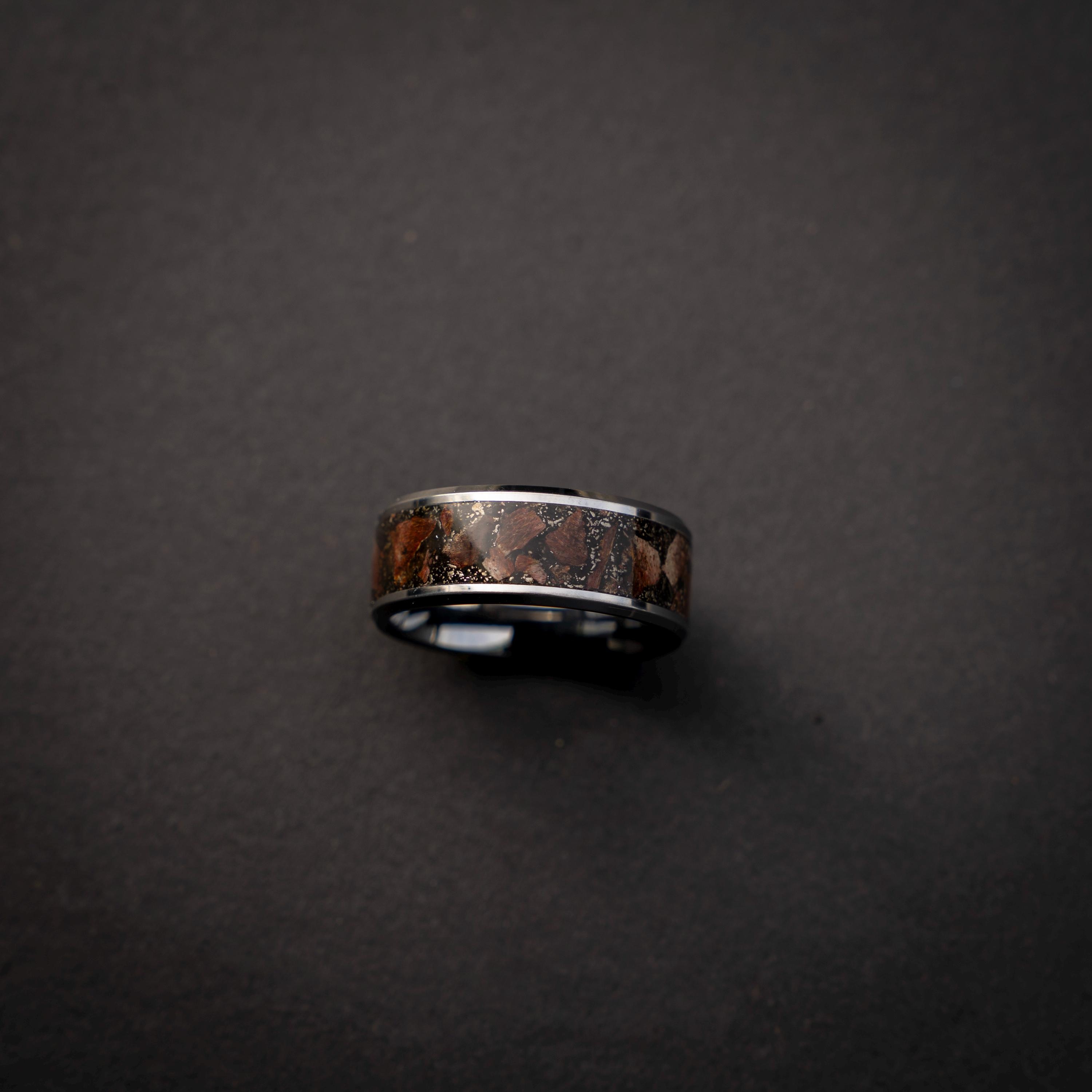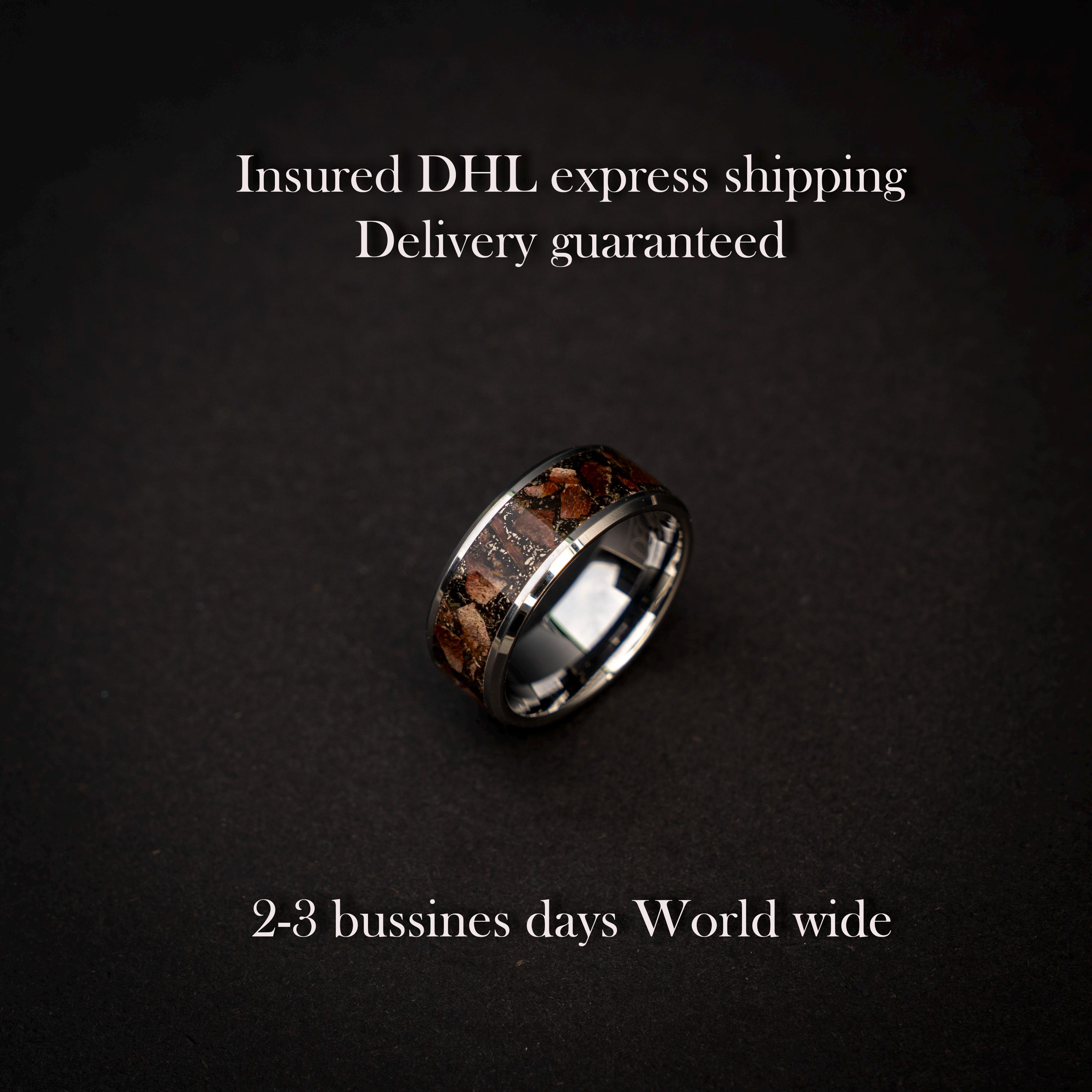 Mixing ratios vary in our bands (if applicable), which can result in materials being more or less visible as pictured. By purchasing this listing, you agree that this is possible. If you want to be sure a certain part is visible, please send us a message upfront to discuss. After shipping, the ring design is final, altering it upon receiving can only be done for a small fee to cover our costs for express shipping.