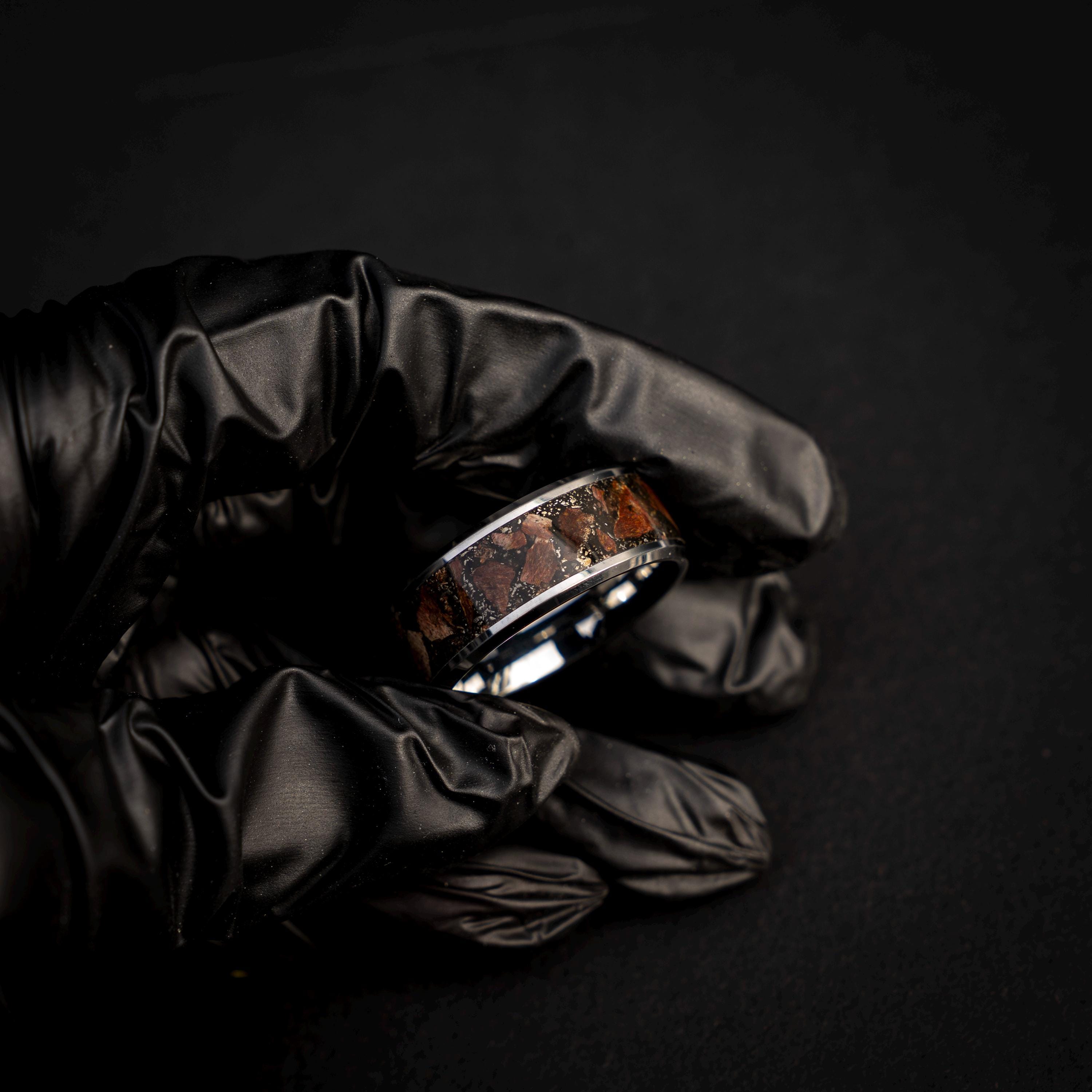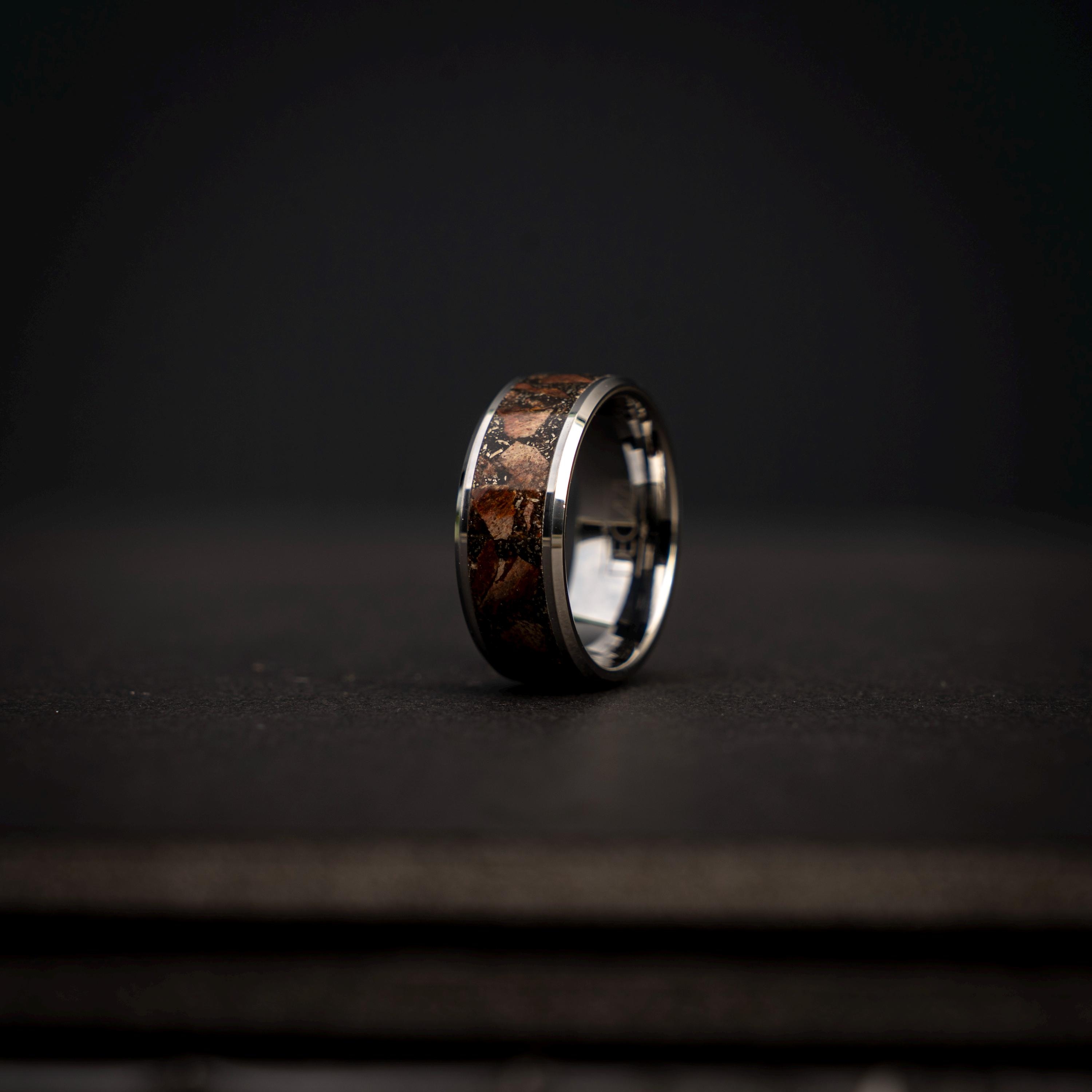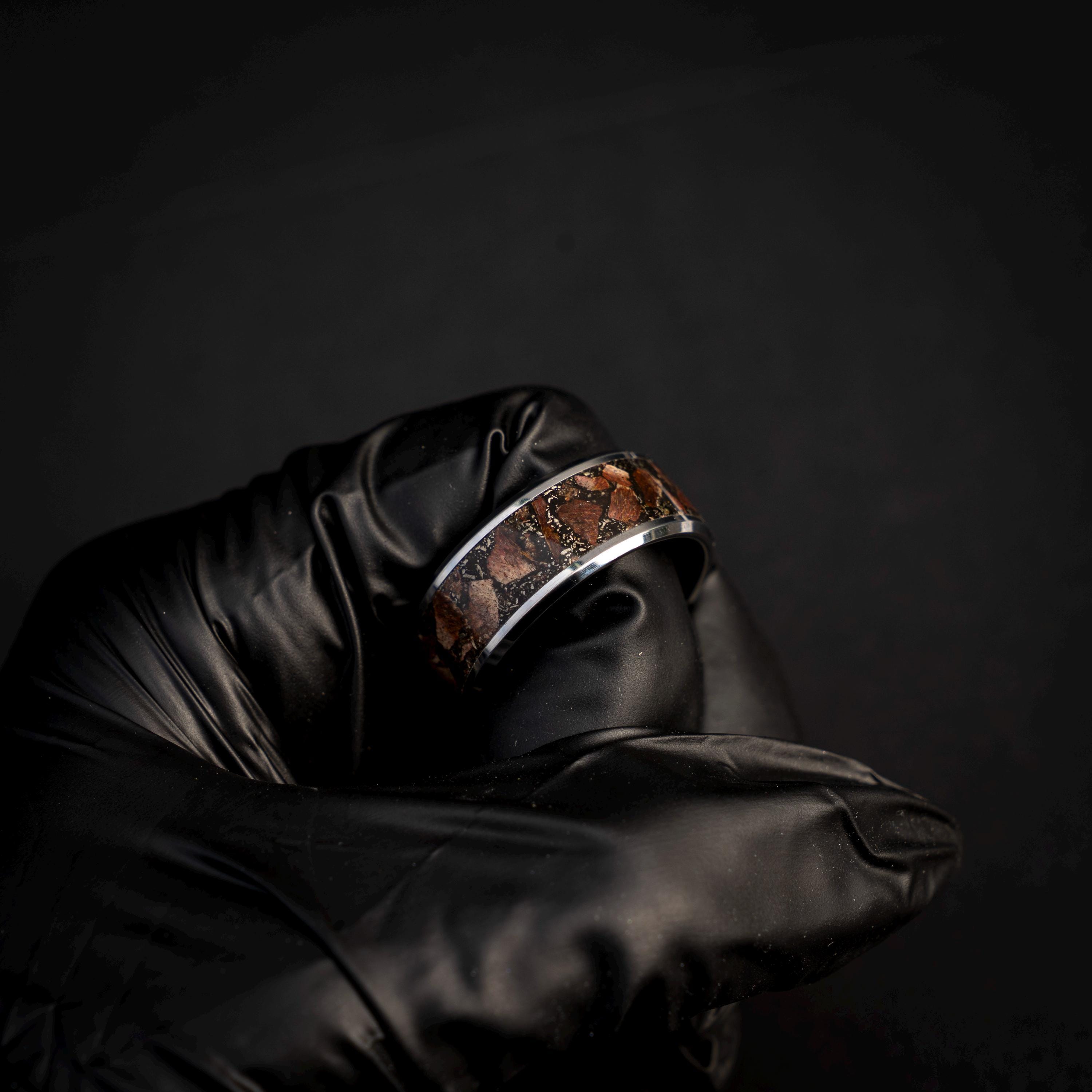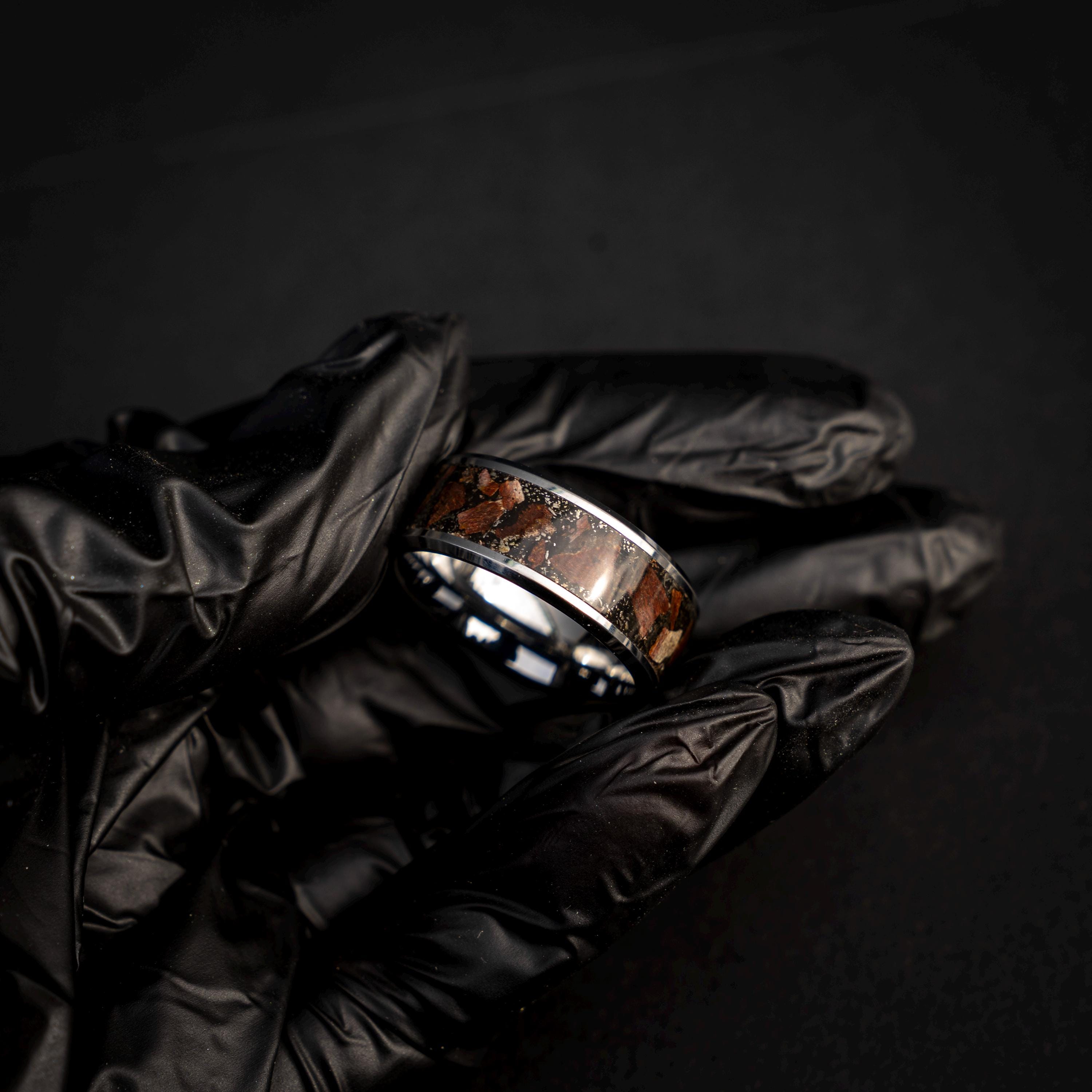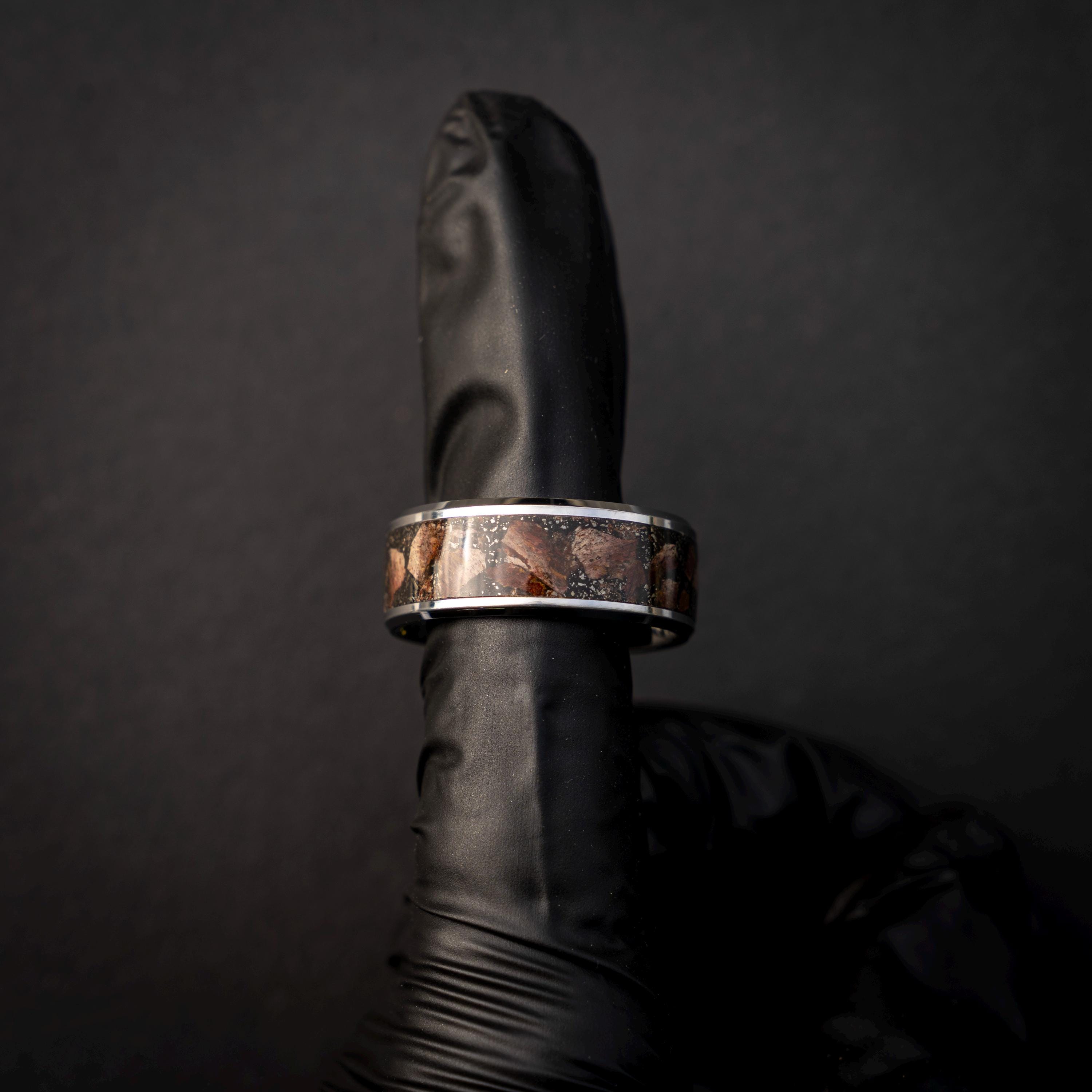 Mixing ratios vary in our bands (if applicable), which can result in materials being more or less visible as pictured. By purchasing this listing, you agree that this is possible. If you want to be sure a certain part is visible, please send us a message upfront to discuss. After shipping, the ring design is final, altering it upon receiving can only be done for a small fee to cover our costs for express shipping.