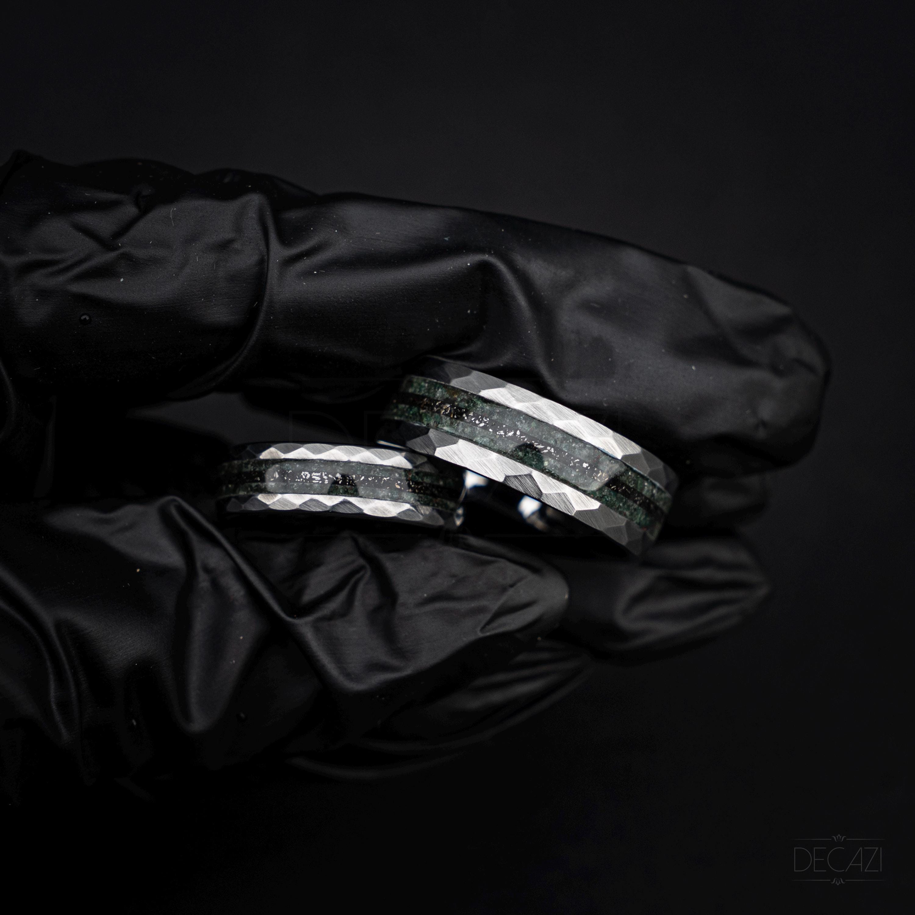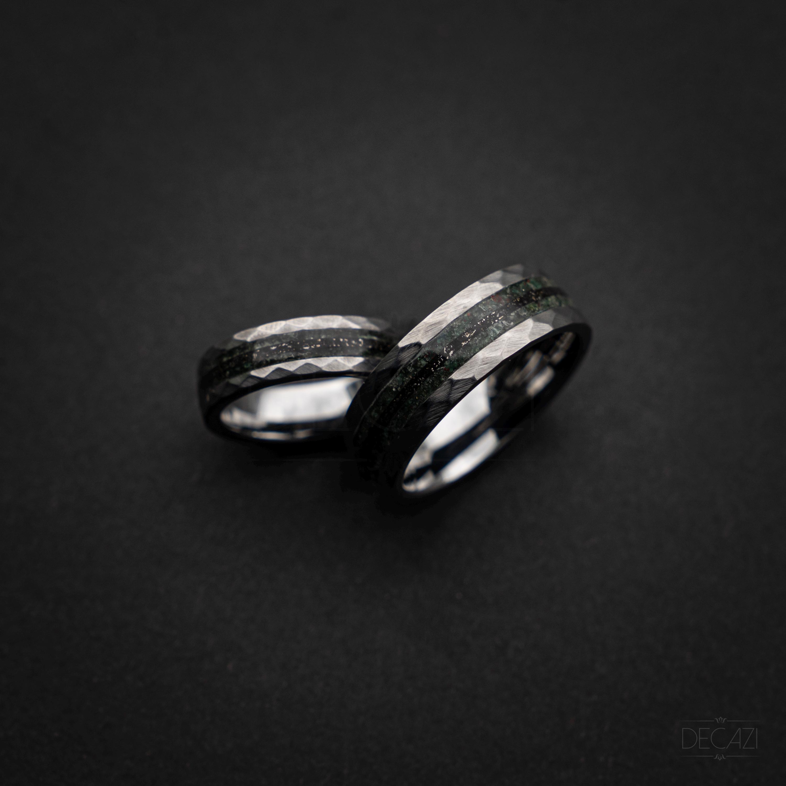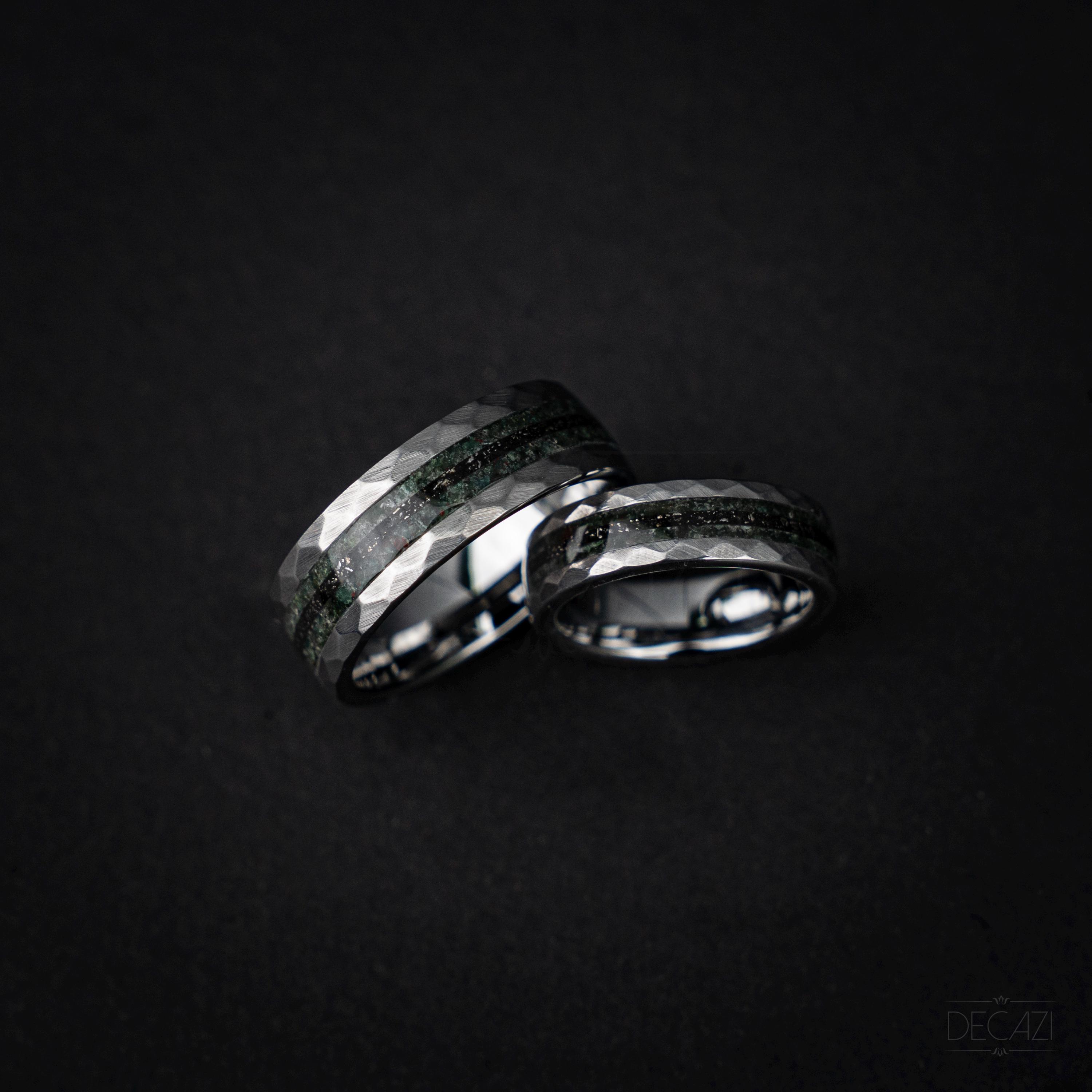 Moss Agate Natural Genuine Meteorite Engagement Couples Ring Set