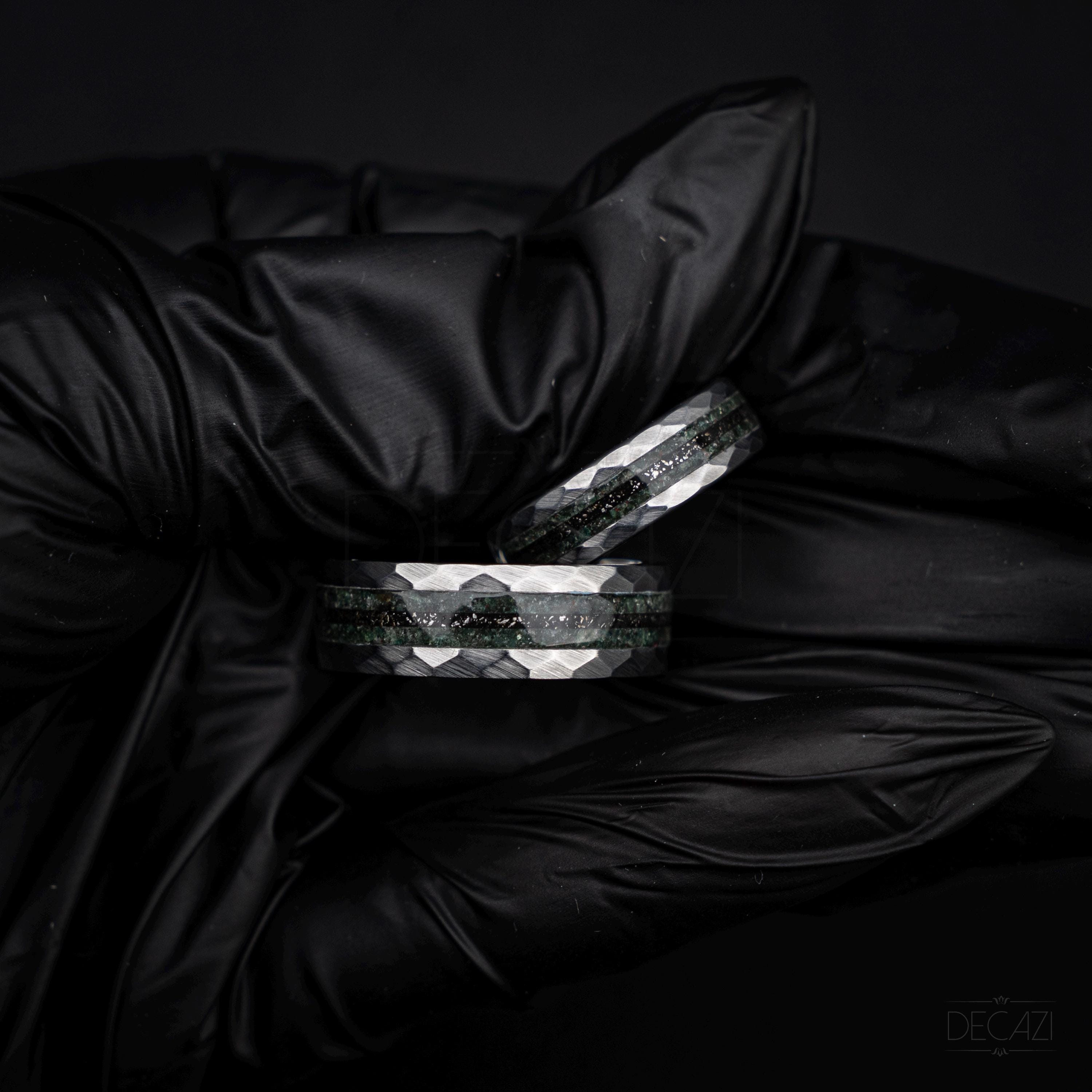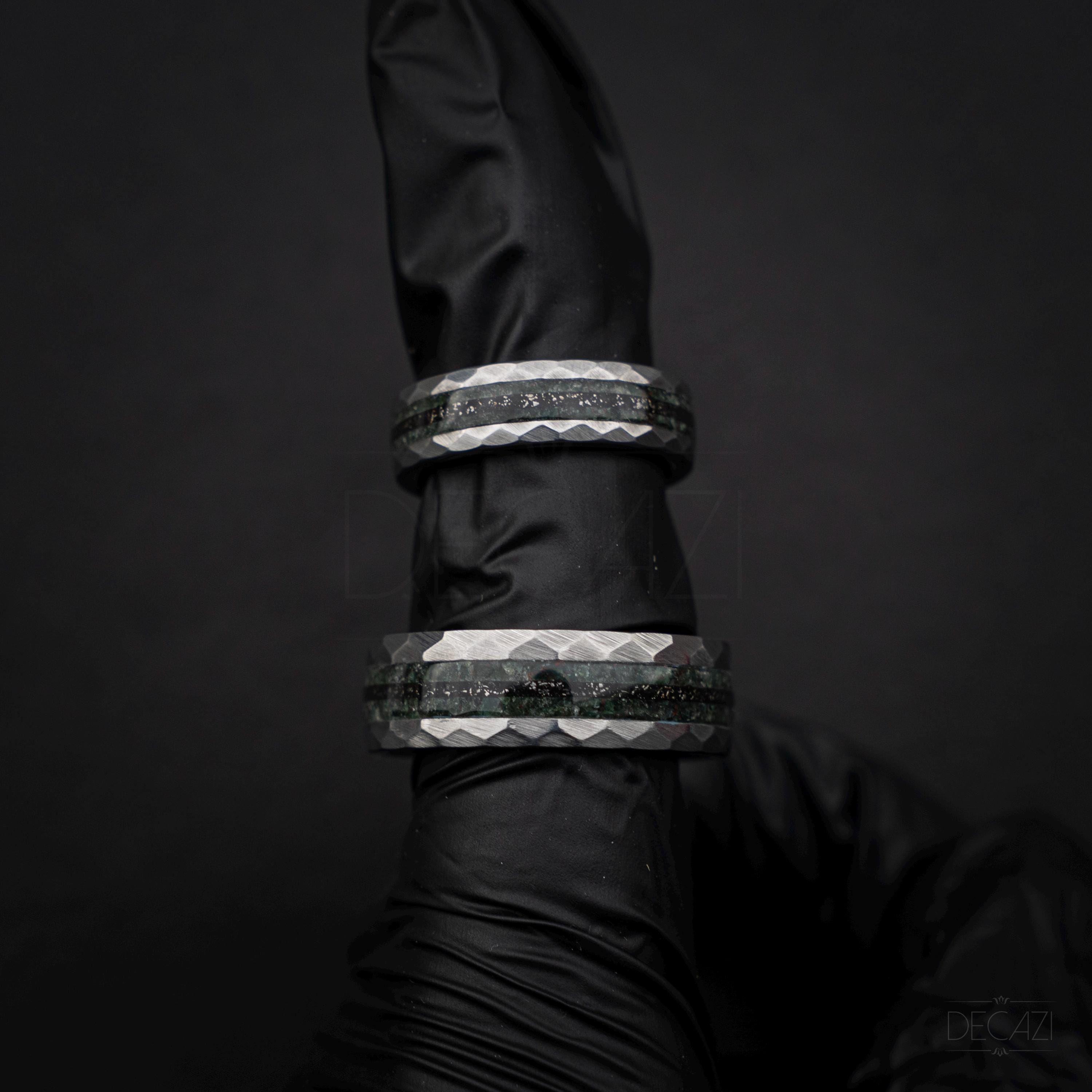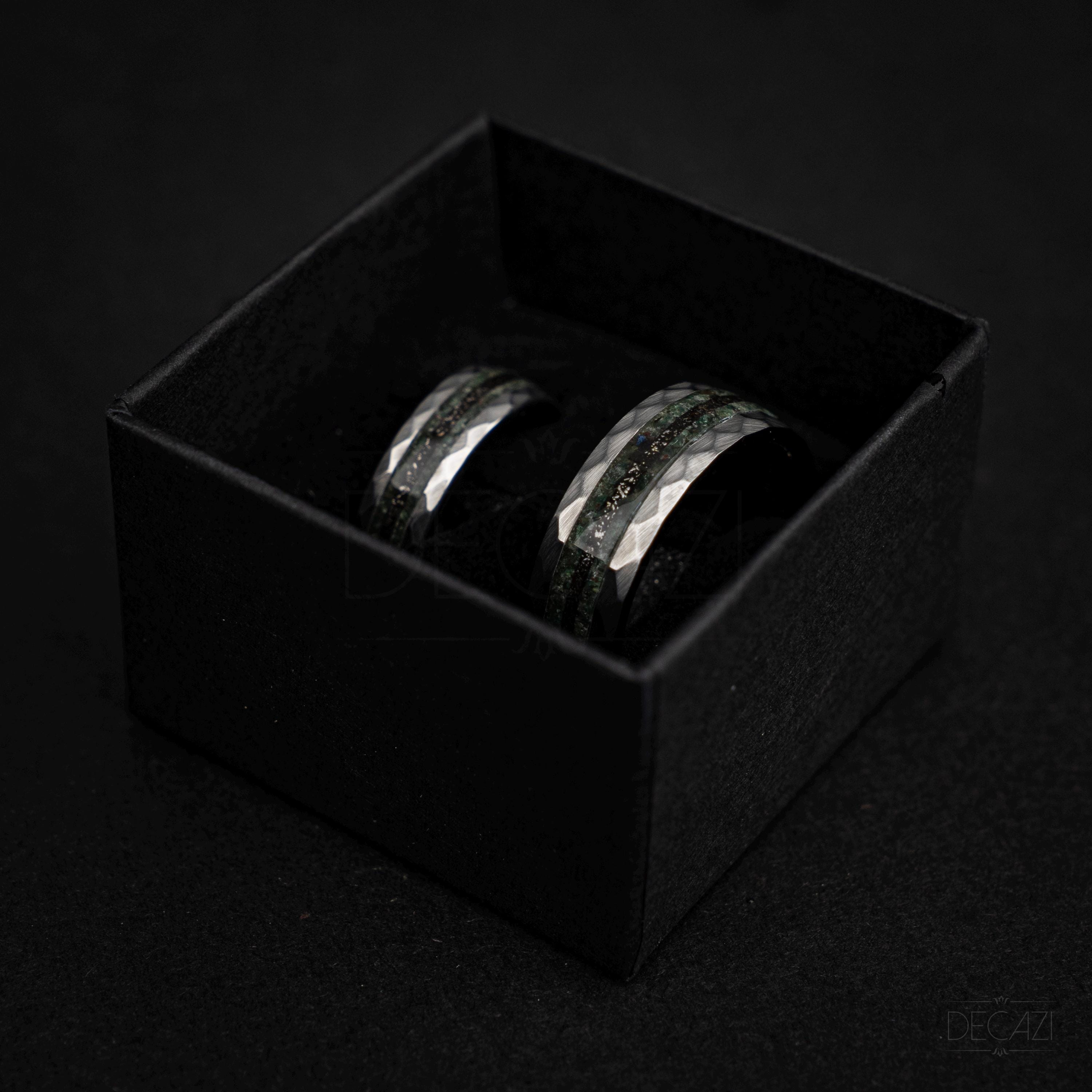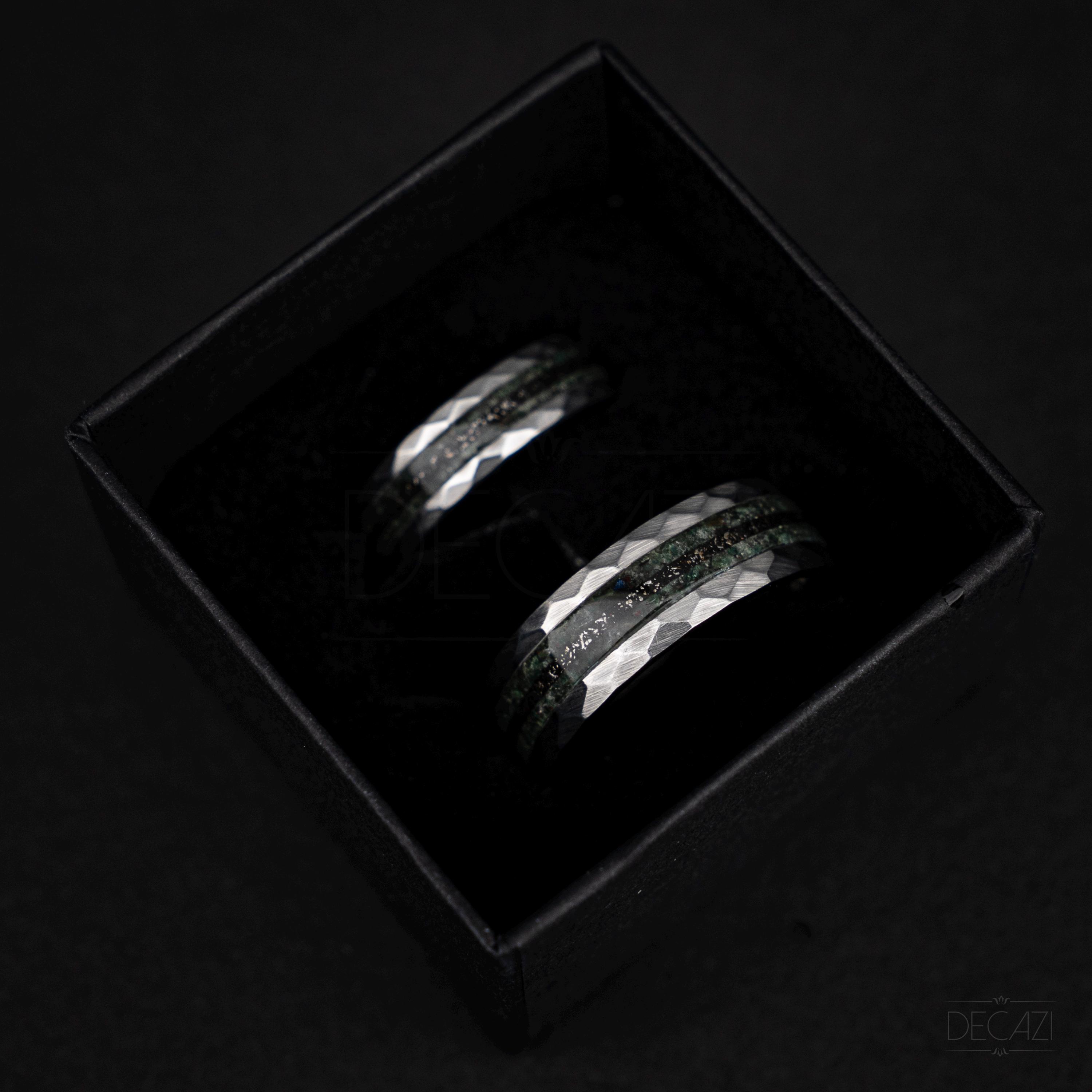 Moss Agate Natural Genuine Meteorite Engagement Couples Ring Set