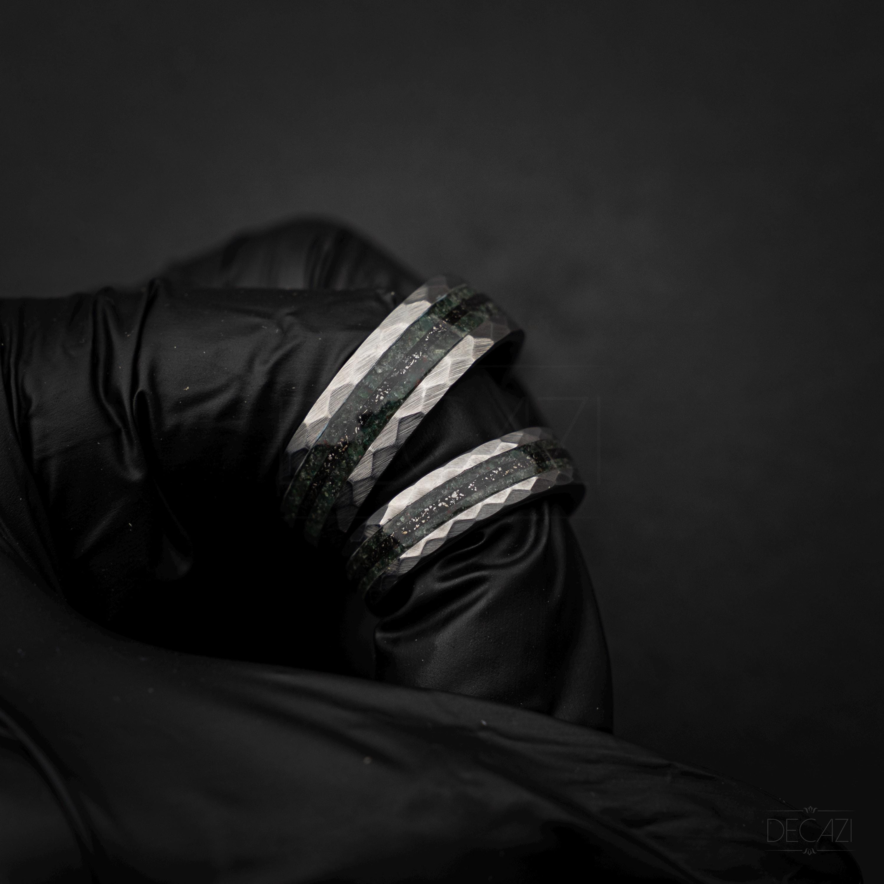 Our rings can be worn by men and women. The size and width can be adjusted as you wish, for the male a thicker ring and for the ladies a thinner ring. We can make the width 4mm-12mm depending on the design.