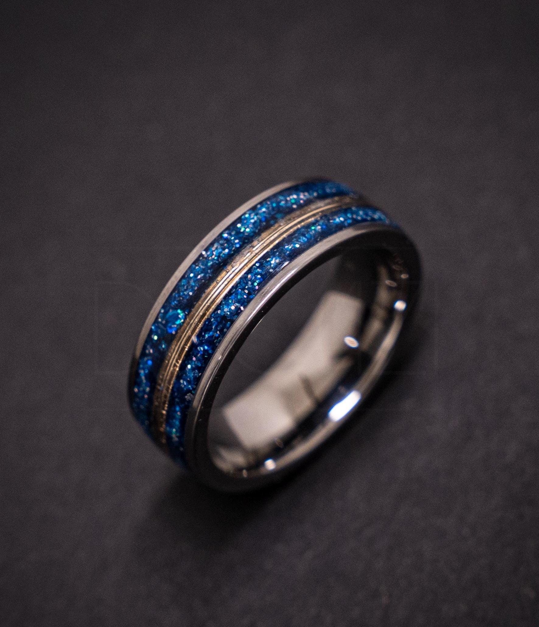 Silver Tungsten Wedding Band 8mm – Galaxy Opal Inlay + 18K Gold Wire – Comfort Fit – Men’s Engagement Ring