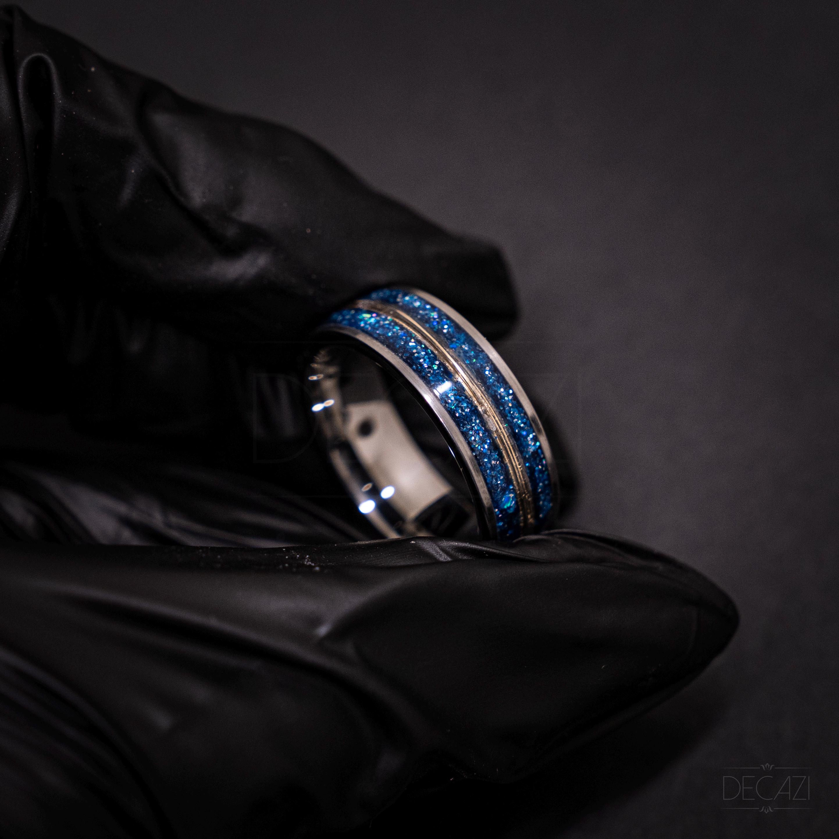 Our rings can be worn by men and women. The size and width can be adjusted as you wish, for the male a thicker ring and for the ladies a thinner ring. We can make the width 4mm-12mm depending on the design.