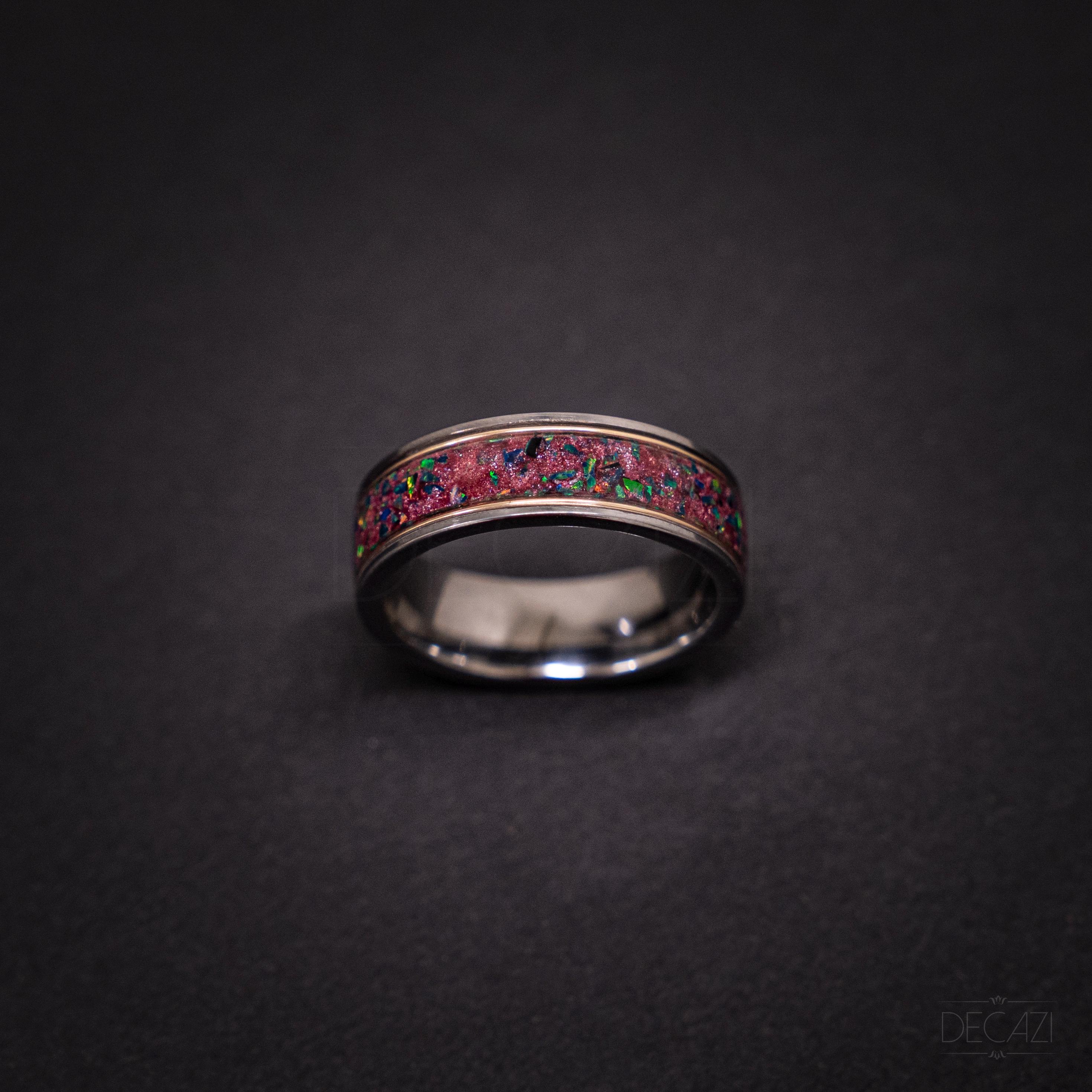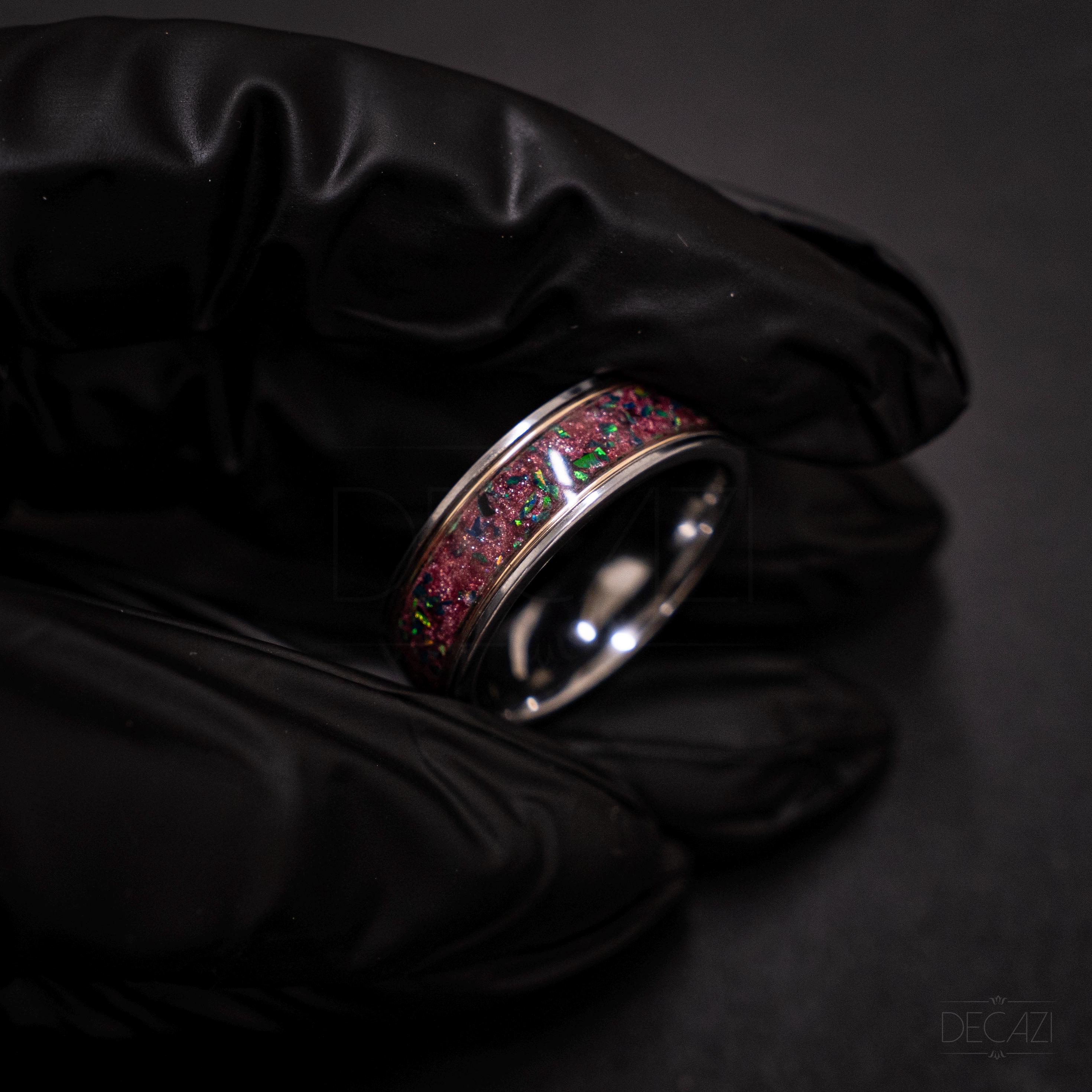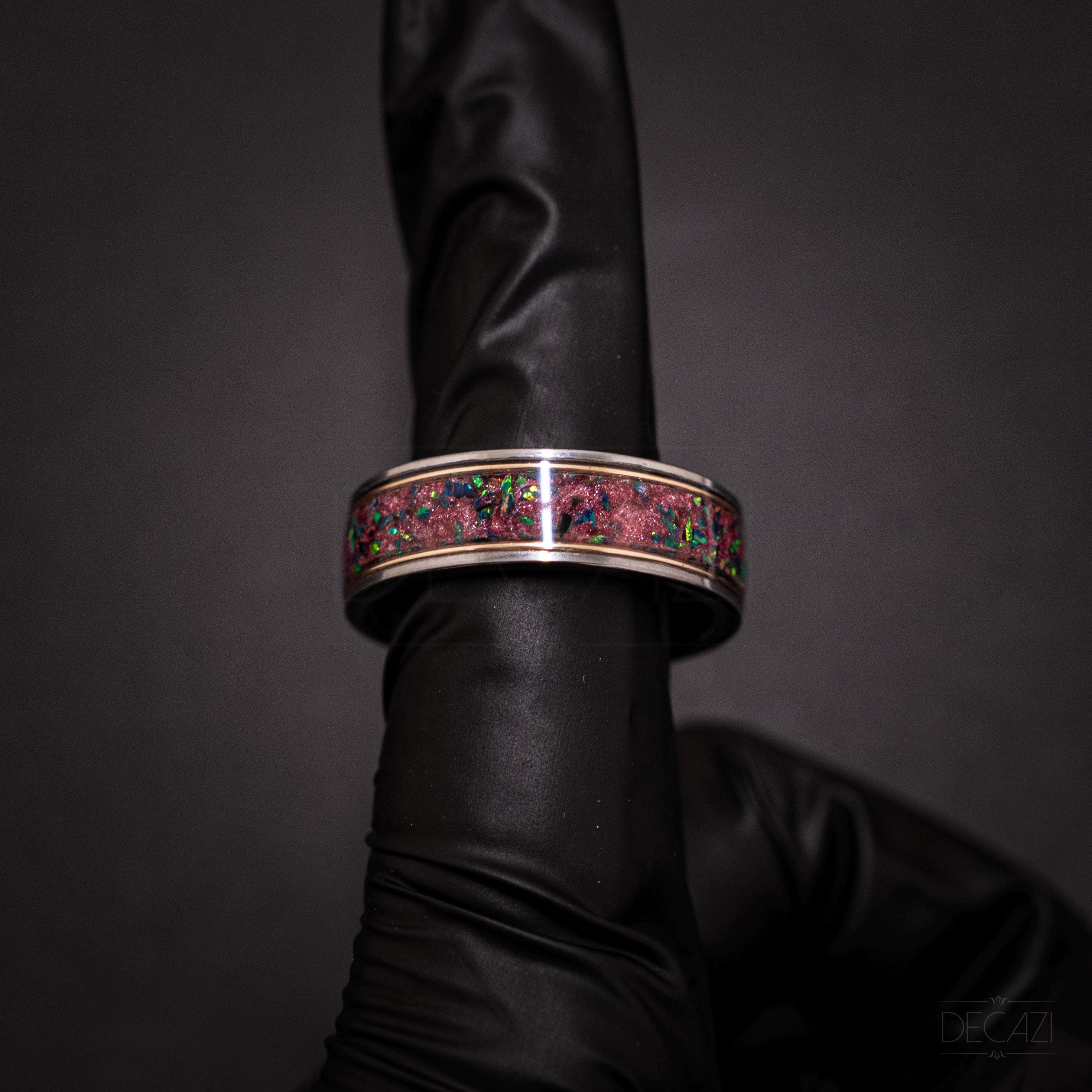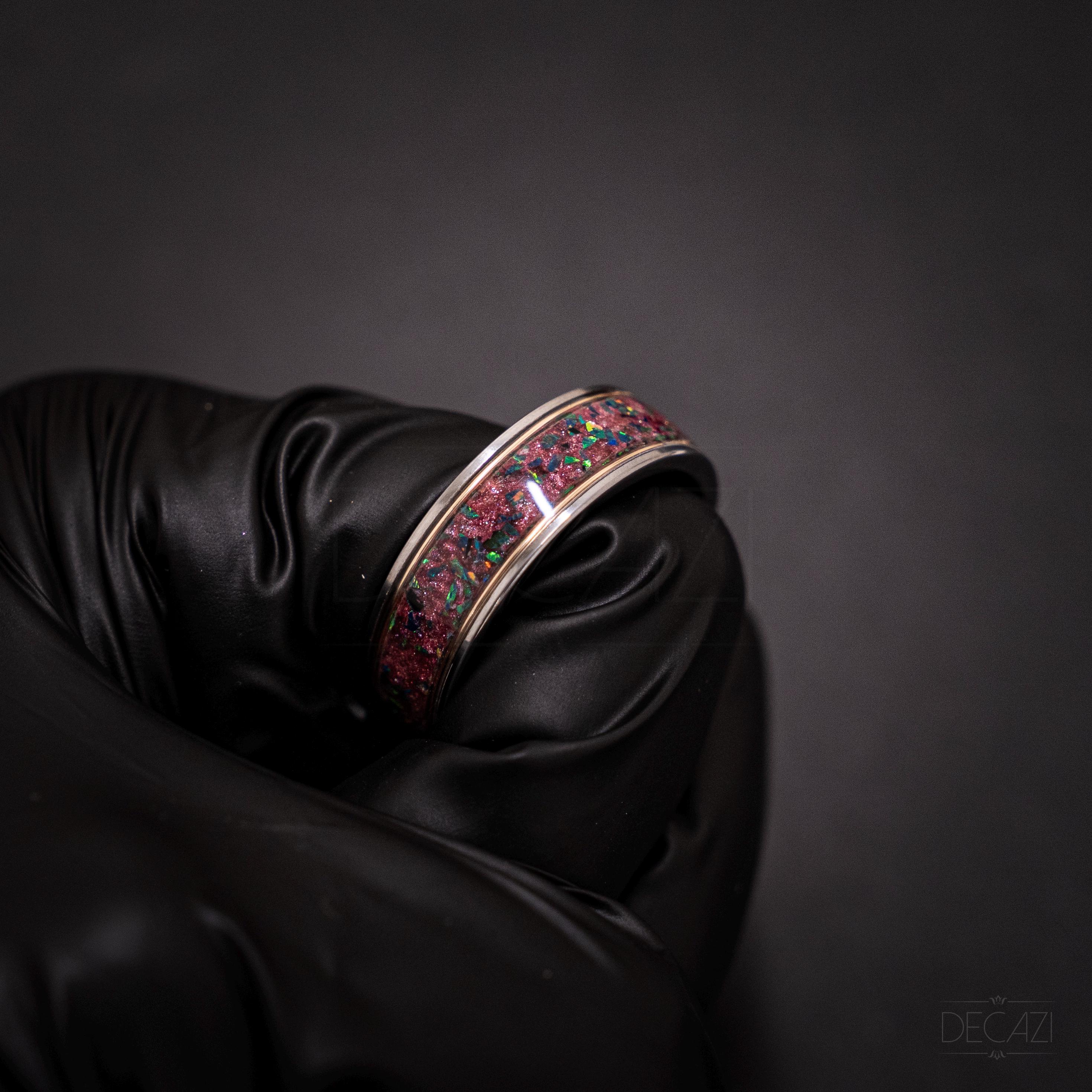 • Inlay: Nebula Galaxy dust + black opal (green fire)