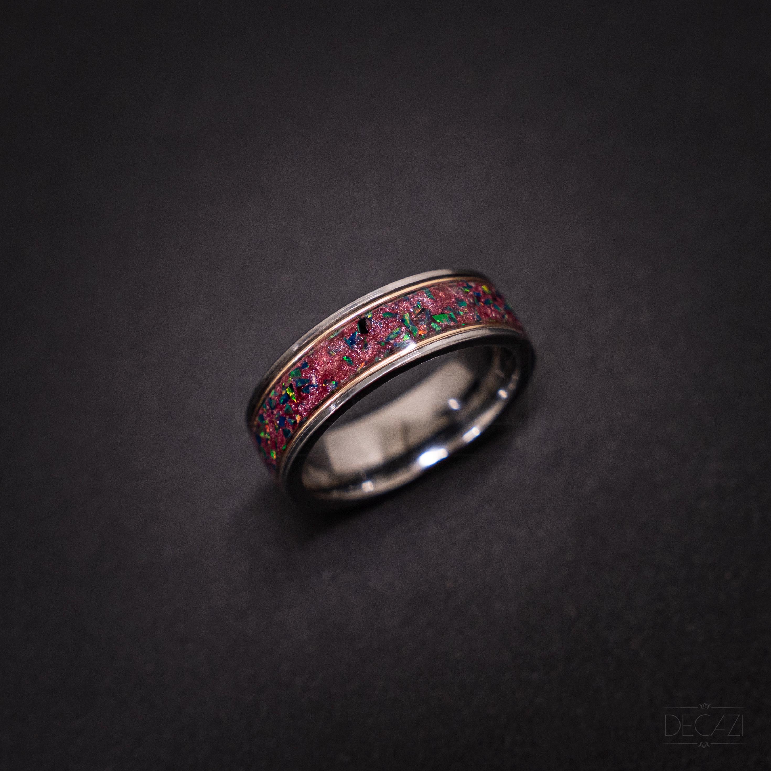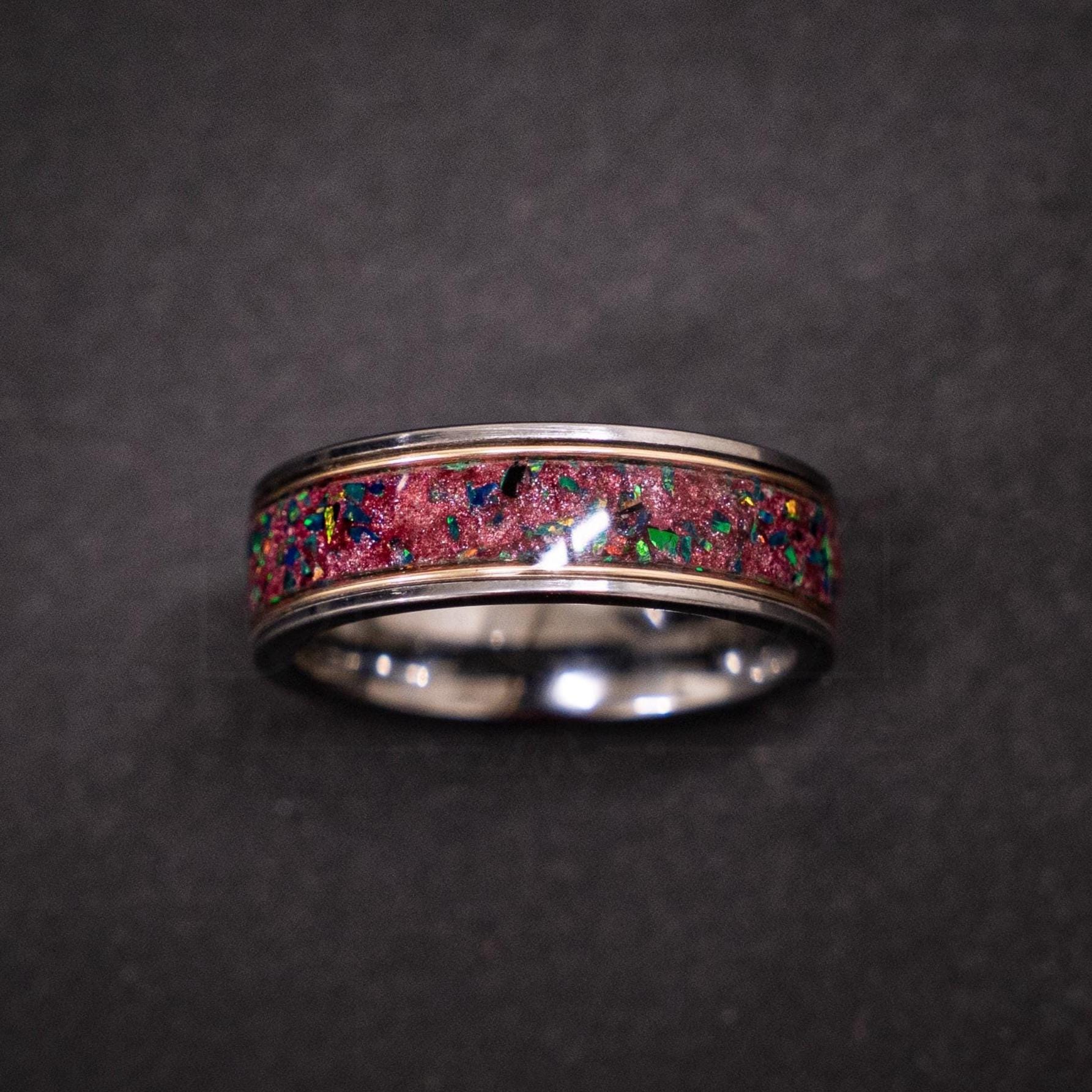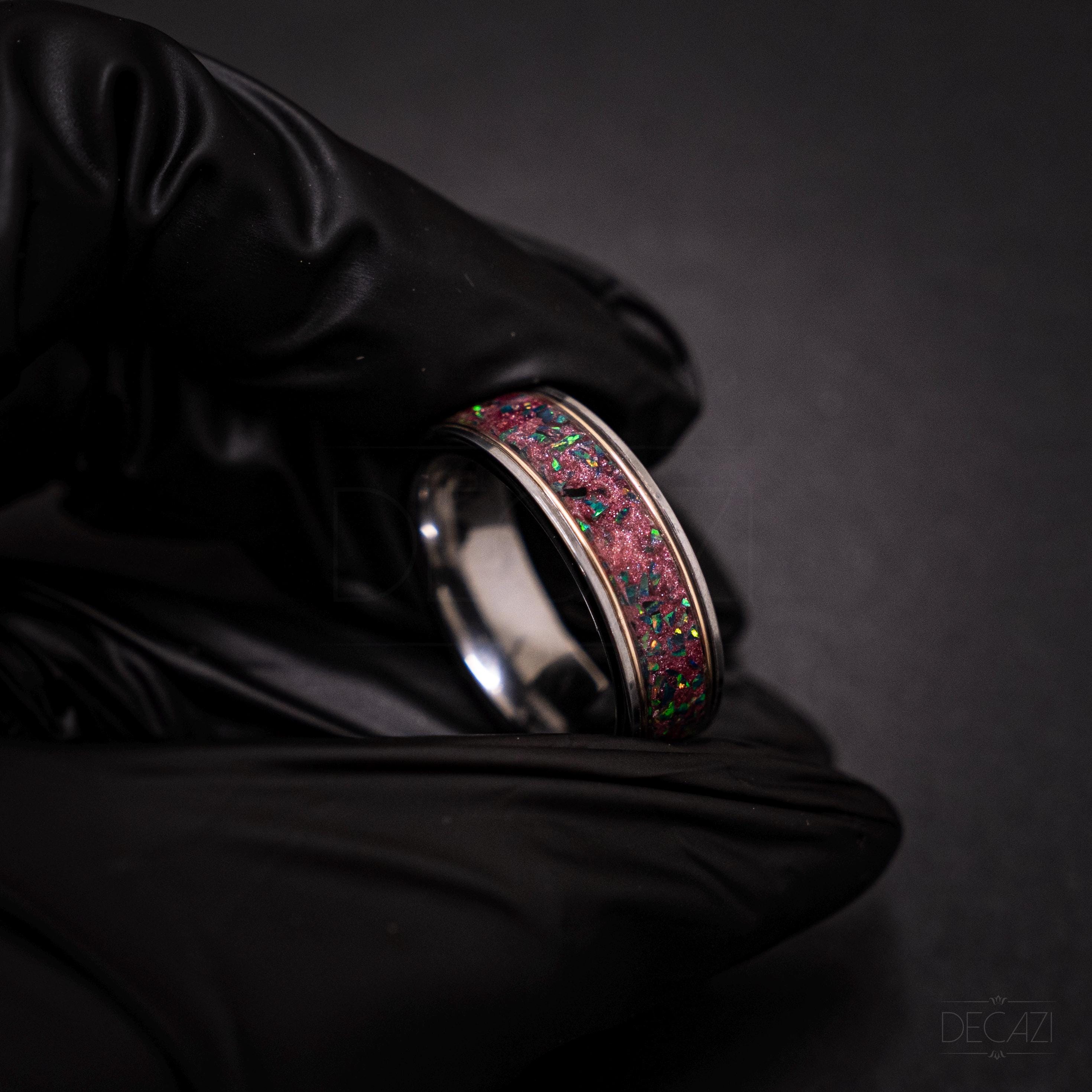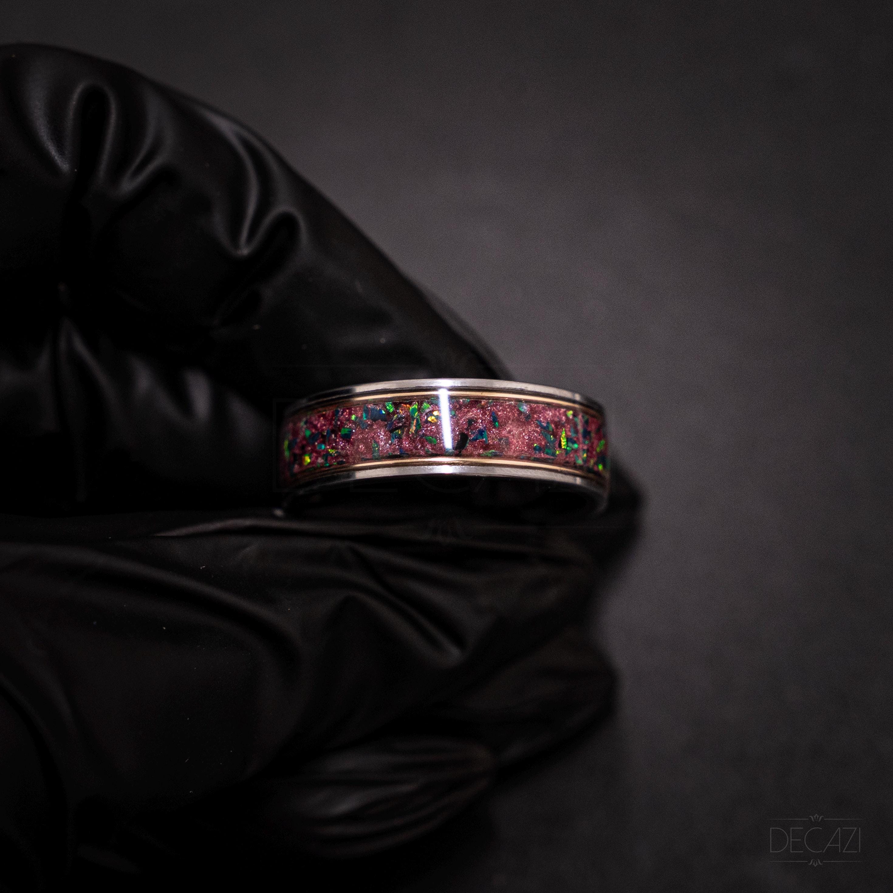 • Inlay: Nebula Galaxy dust + black opal (green fire)
