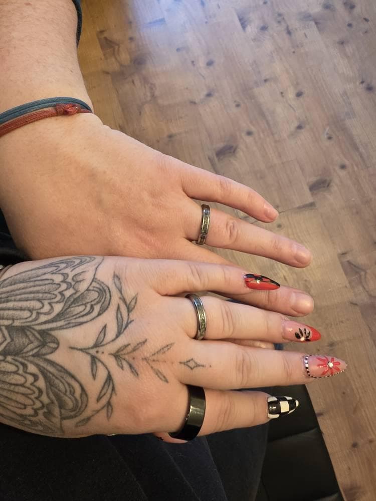 Our rings can be worn by men and women. The size and width can be adjusted as you wish, for the male a thicker ring and for the ladies a thinner ring. We can make the width 4mm-12mm depending on the design.