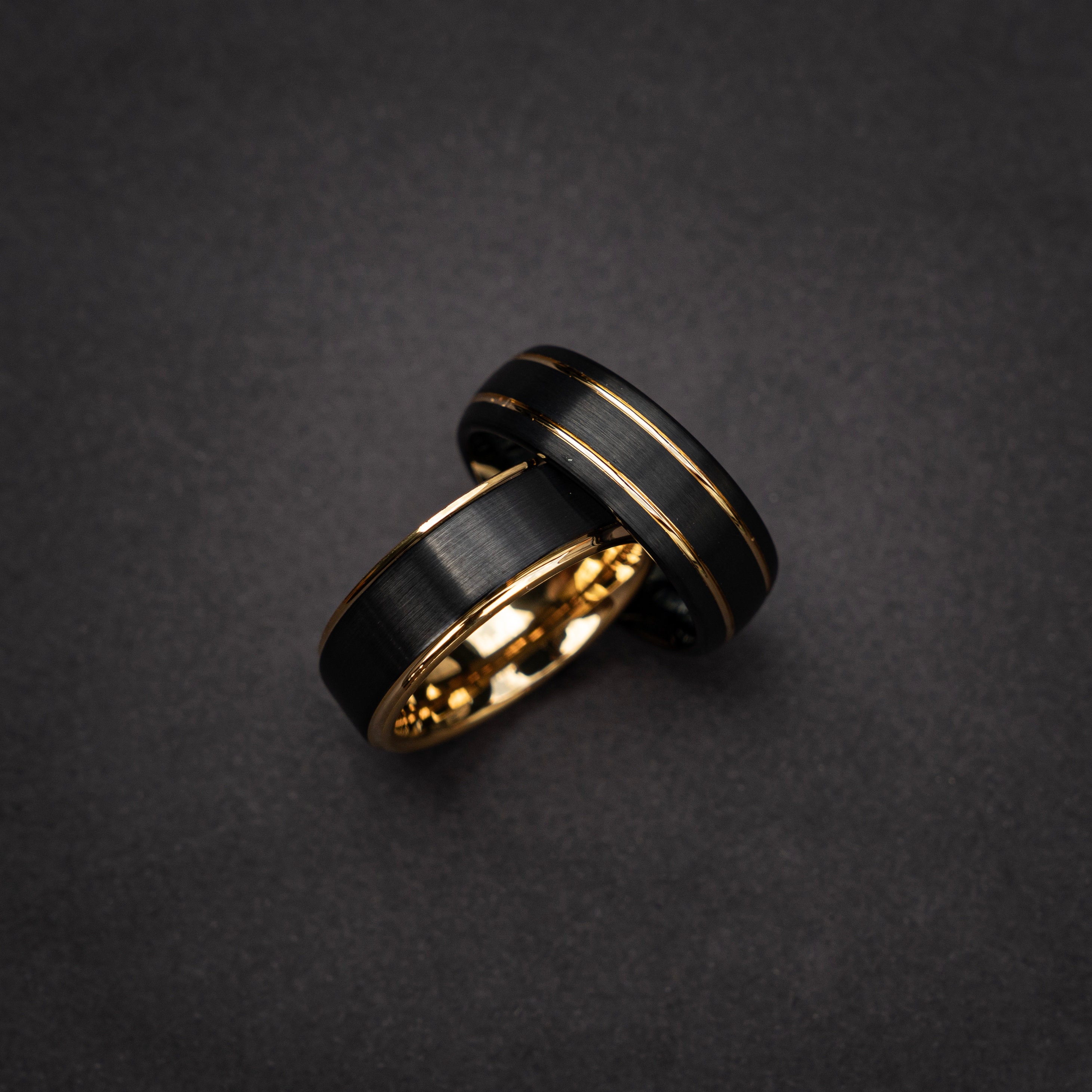 Wedding Ring Set, Matching Rings, Black Tungsten Ring, Wedding Rings, Couple Rings, Gold Tungsten Ring, His and Hers | Decazi