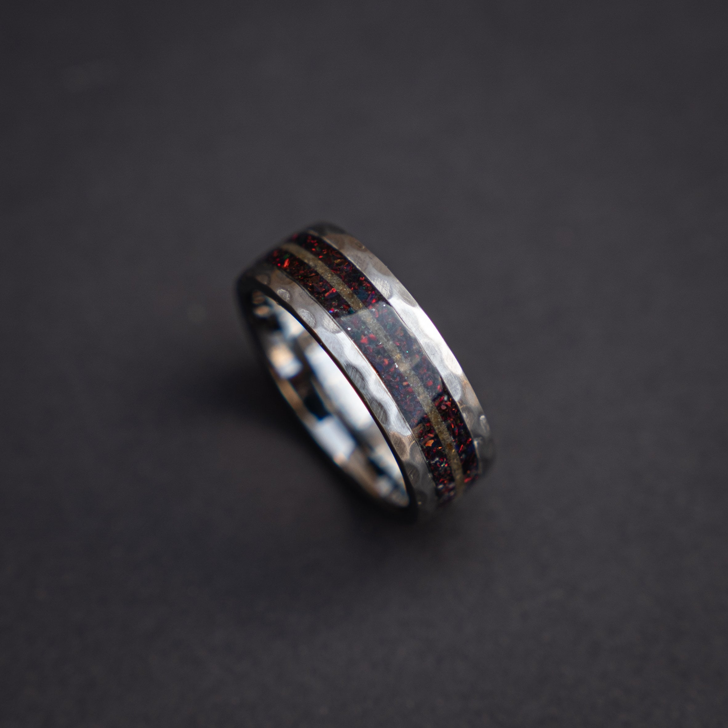 Mixing ratios of vary in our bands (if applicable), this can results in materials can be more or less visible as pictured. By purchasing this listing you agree that this is possible, if you want to be sure a certain part is visible please send us a message upfront to discuss. After shipment the ring design is final, altering it upon receiving can only be done for a small fee to cover our costs for express shipping.
