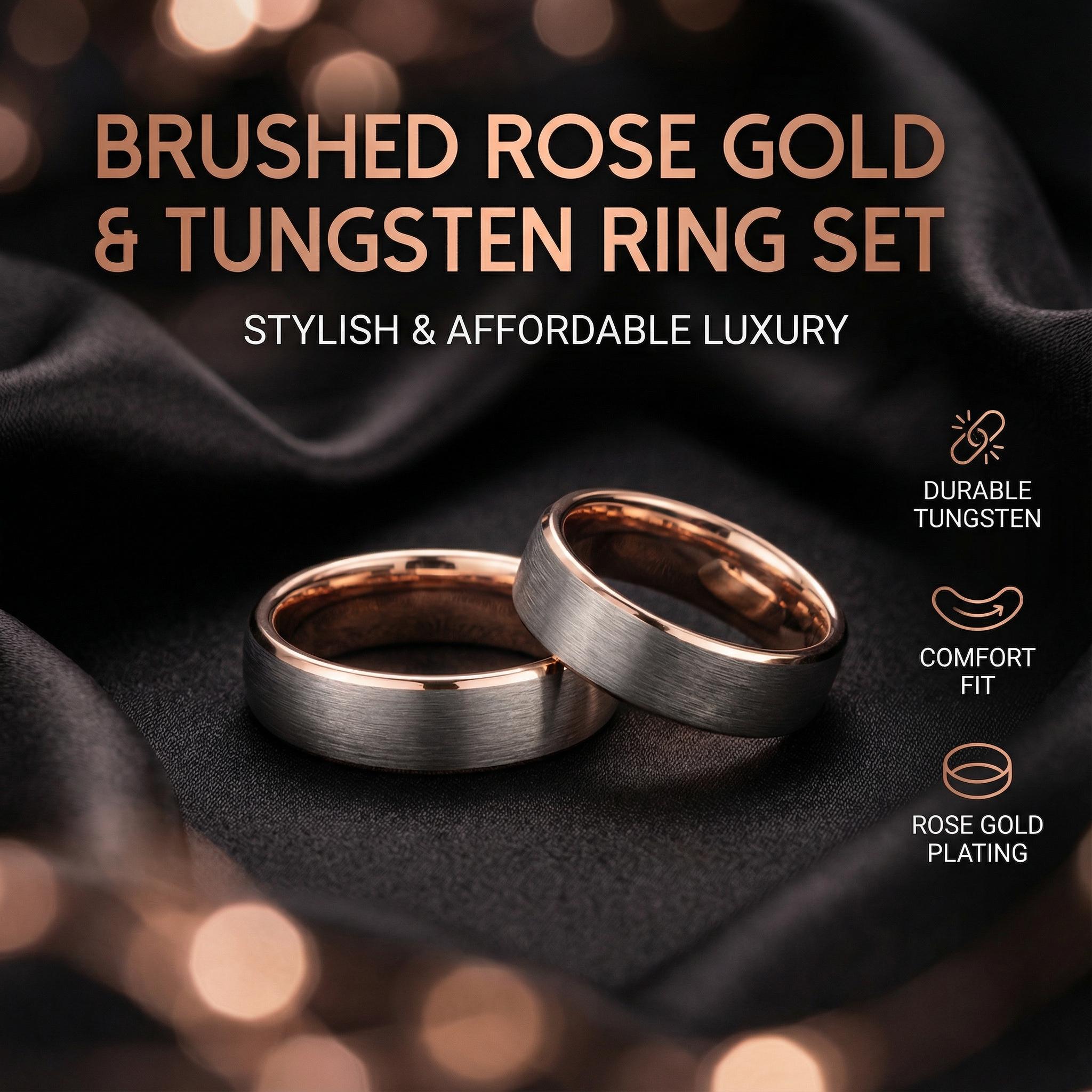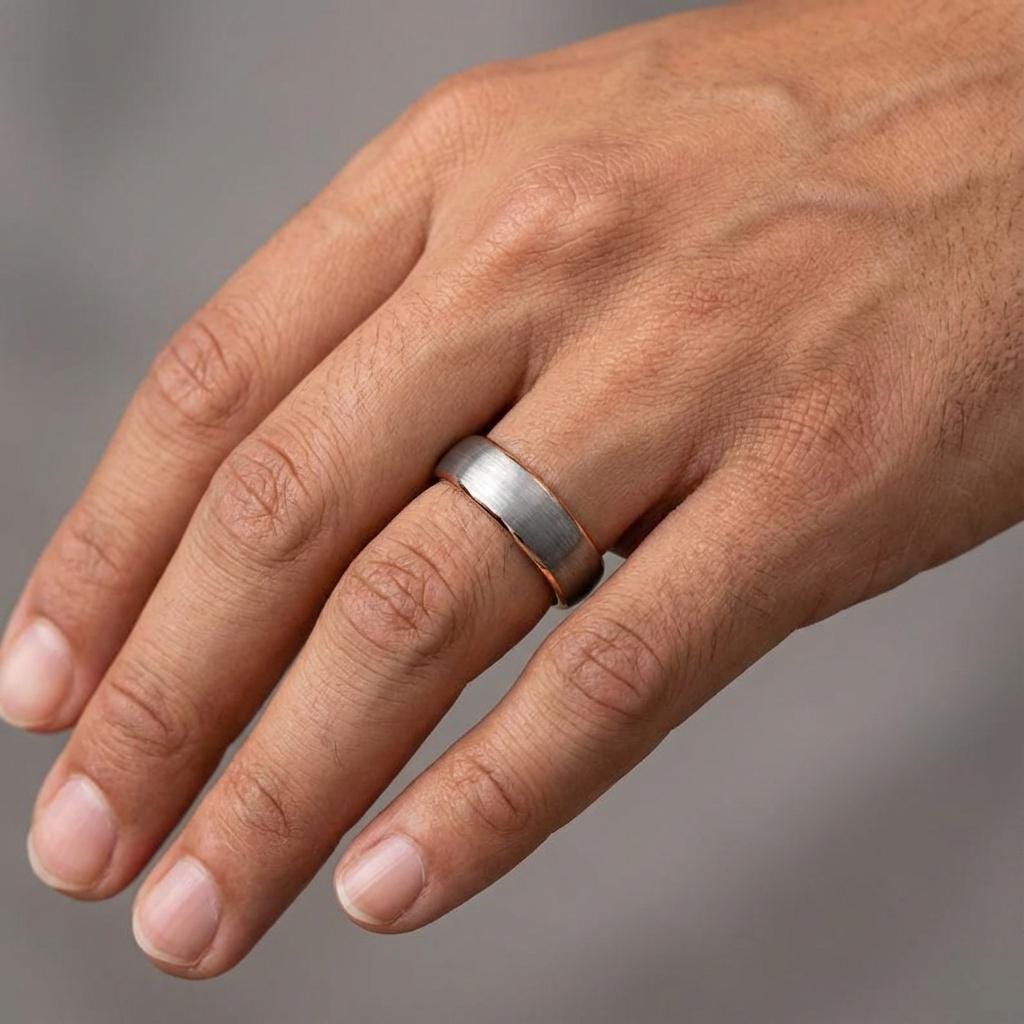 The outside of the ring is brushed tungsten and the inside is rose gold plated with a comfort finish. (I wear it myself and it feels like you don't wear any ring that's how comfortable it sits).