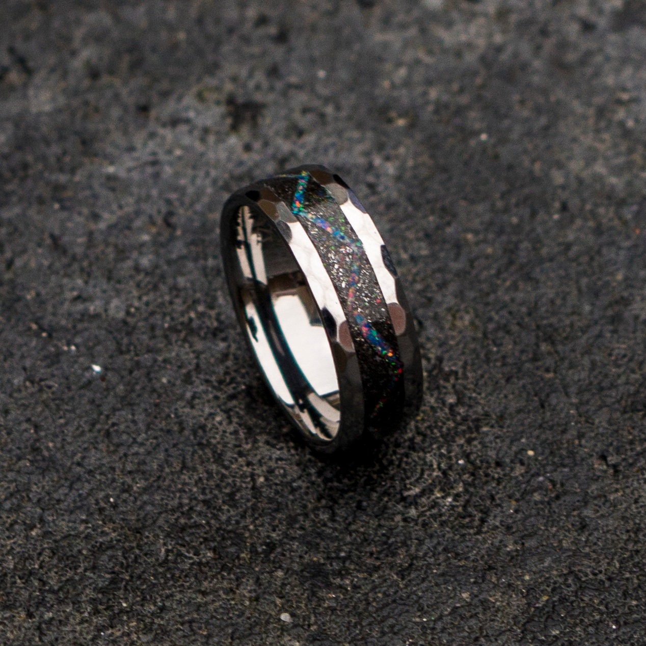 tungsten ring. Meteorite ring. mens wedding band. opal ring. wedding gift. tungsten ring. personalized ring. Galaxy Opal. man opal ring.