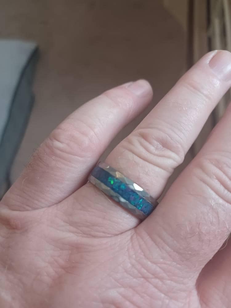 Hammered tungsten ring Galaxy ring Glowstone ring mens wedding band tungsten engagment ring tungsten opal engagment ring tungsten ring