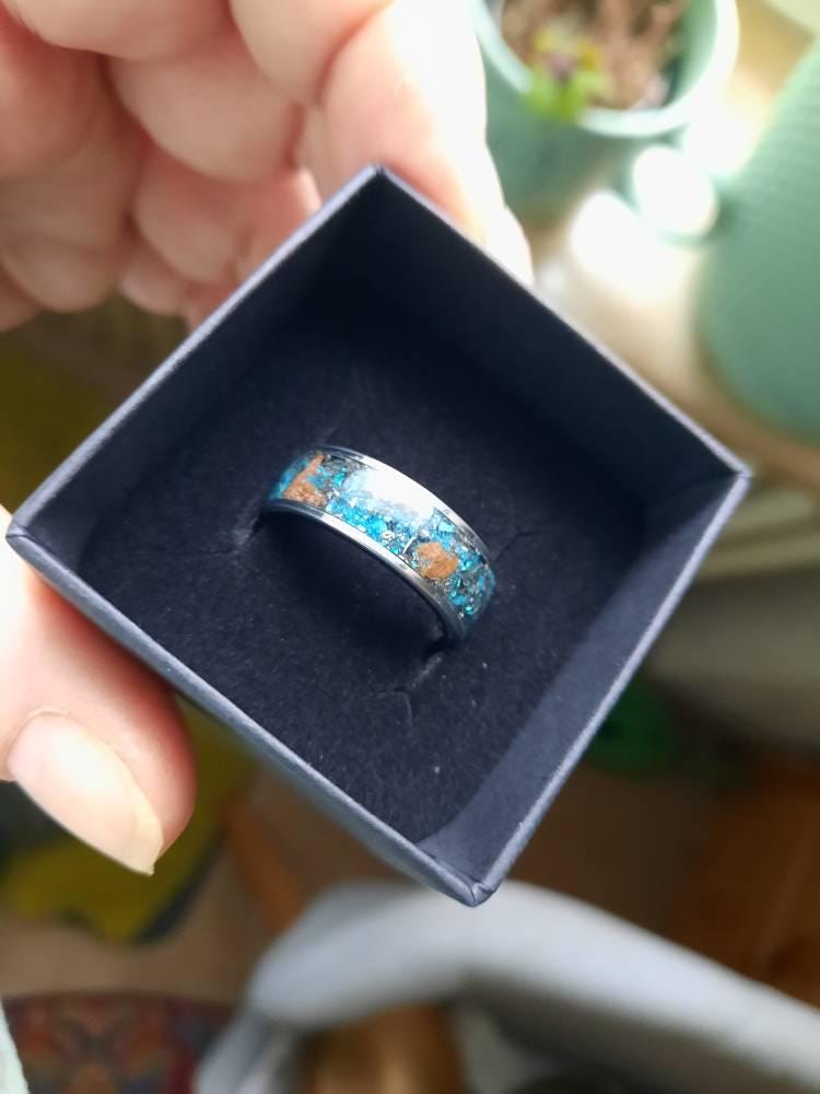Mixing ratios of vary in our bands (if applicable), this can results in materials can be more or less visible as pictured. By purchasing this listing you agree that this is possible, if you want to be sure a certain part is visible please send us a message upfront to discuss. After shipment the ring design is final, altering it upon receiving can only be done for a small fee to cover our costs for express shipping.