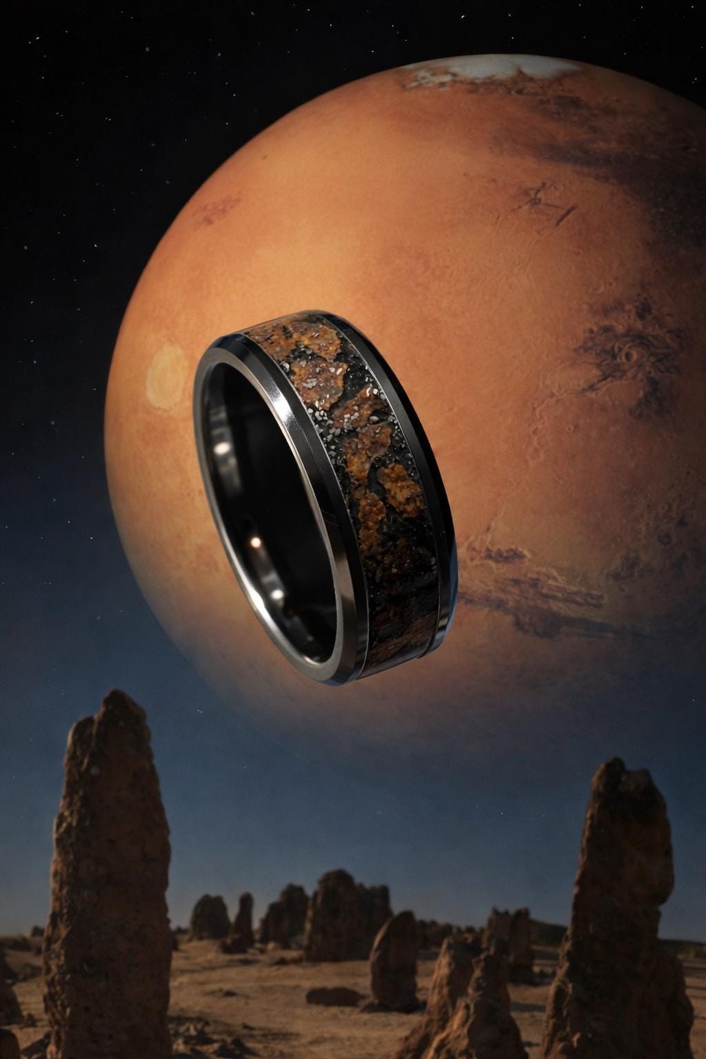 Mars meteorite, Lunar jewelry, Meteorite mens ring, Mens wedding band, Mens meteorite ring, meteorite ring, mens wedding band.